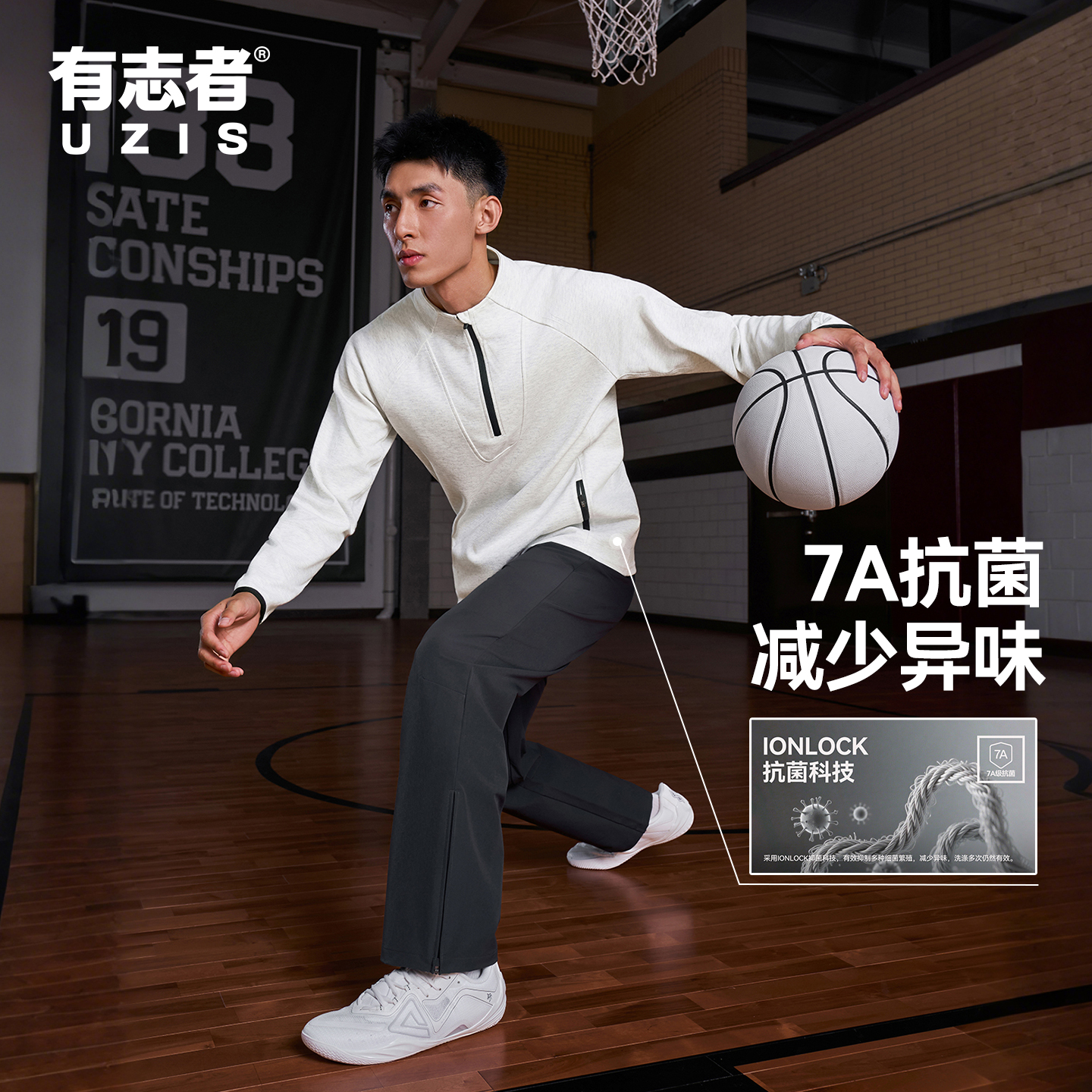 有志者UZIS专业运动卫衣男美式休闲健身篮球跑步训练立领上衣电光