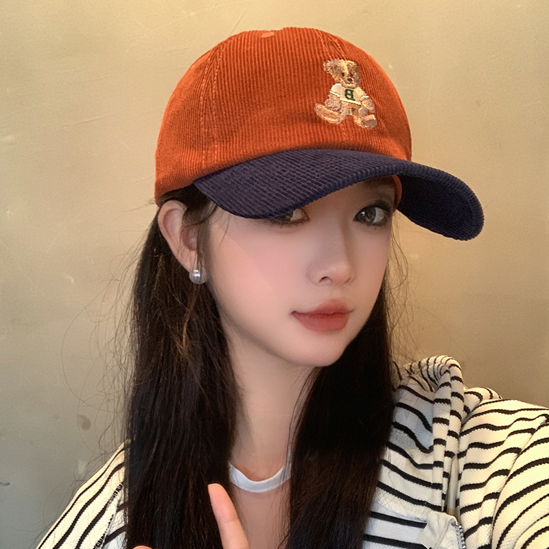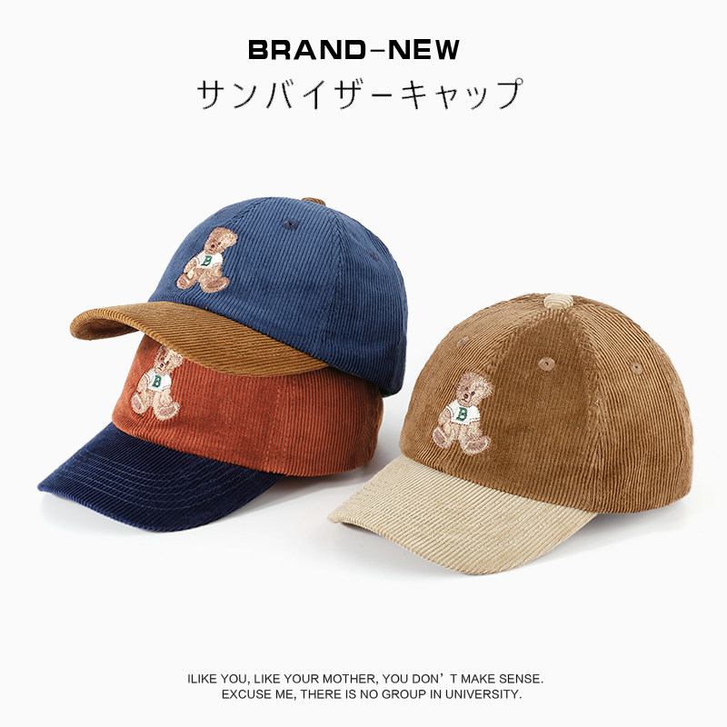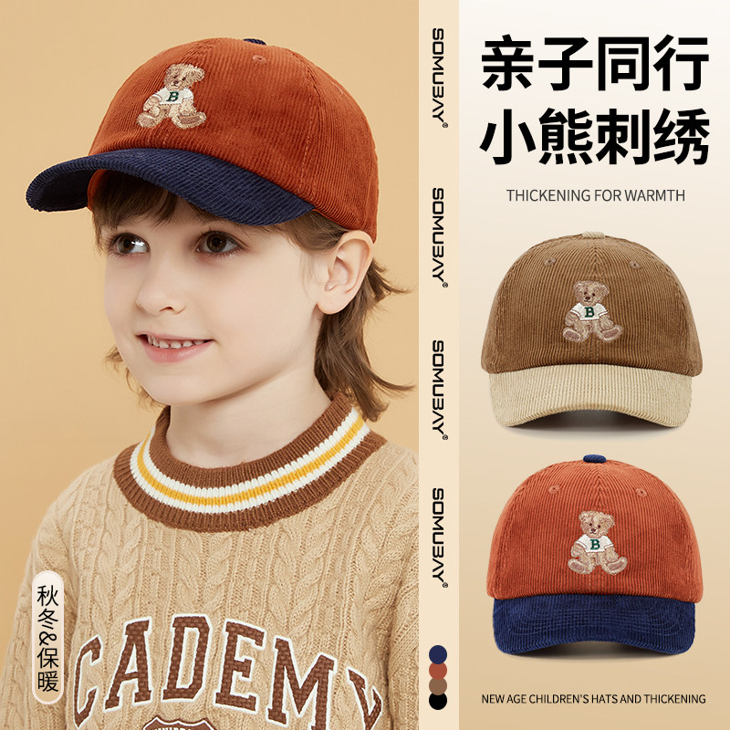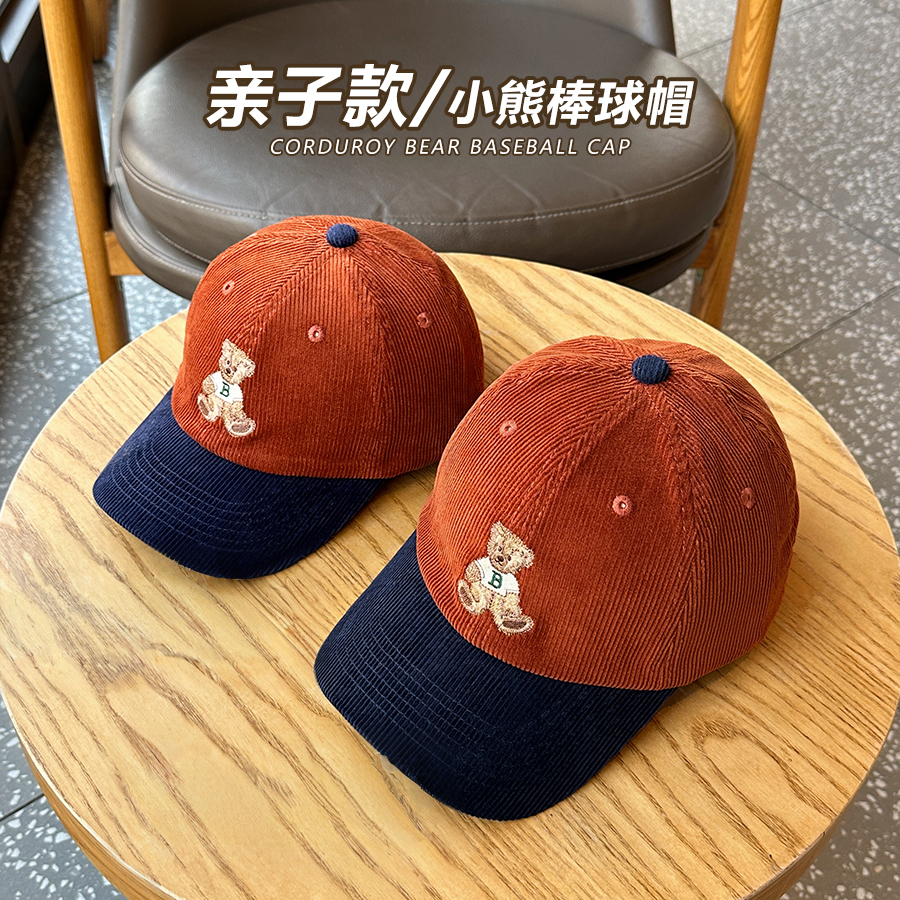 儿童宝宝帽子春秋季灯芯绒棒球帽亲子款可爱刺绣小熊帽子鸭舌帽女