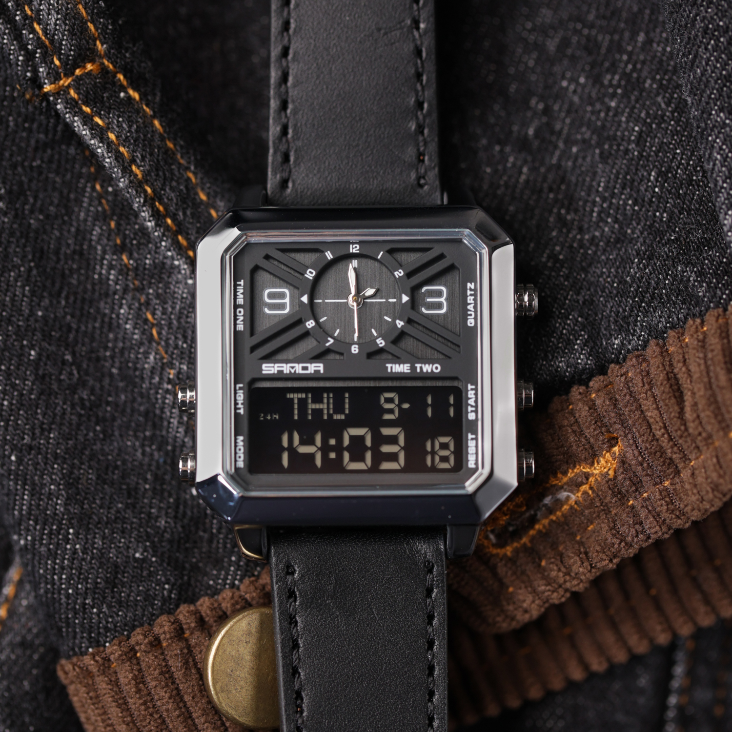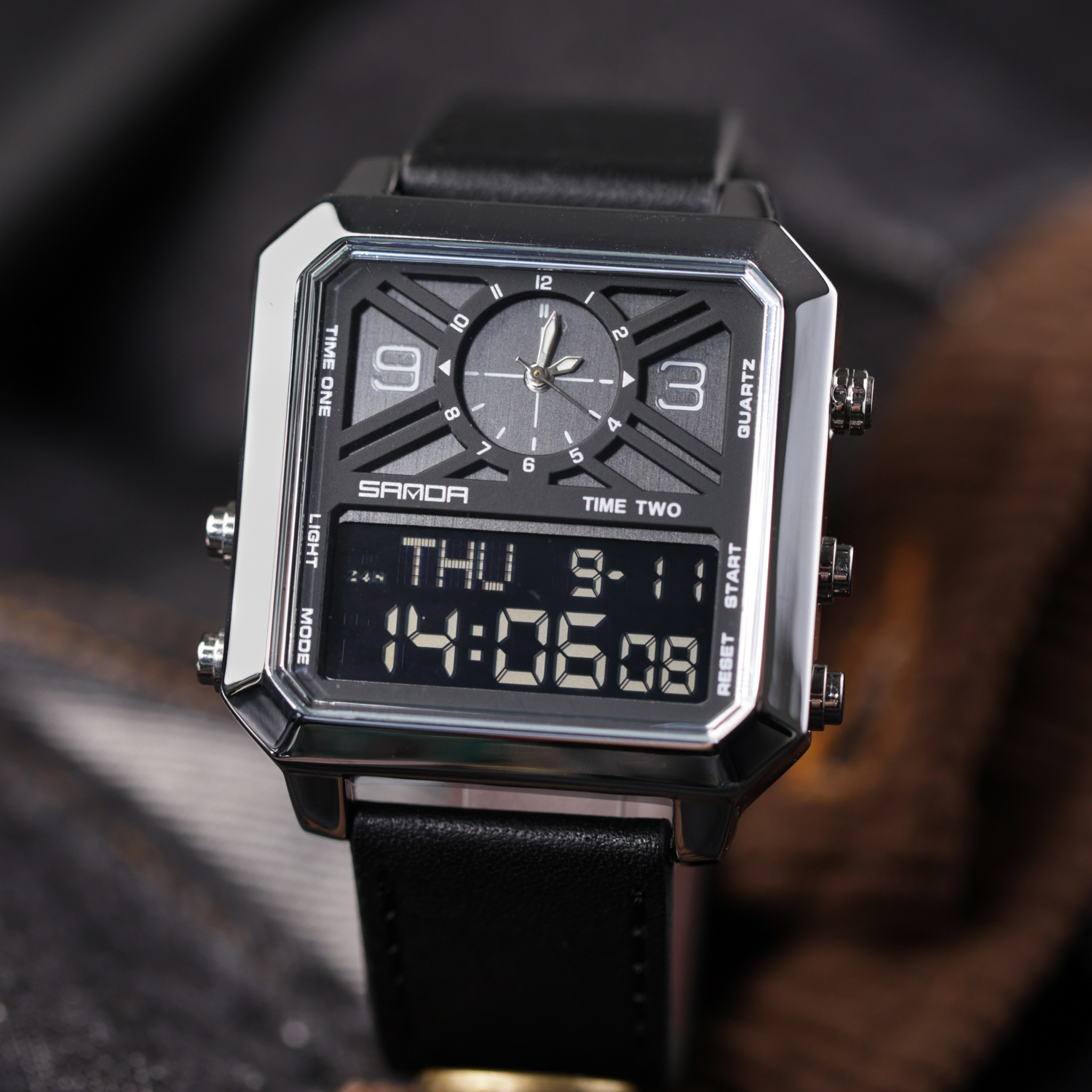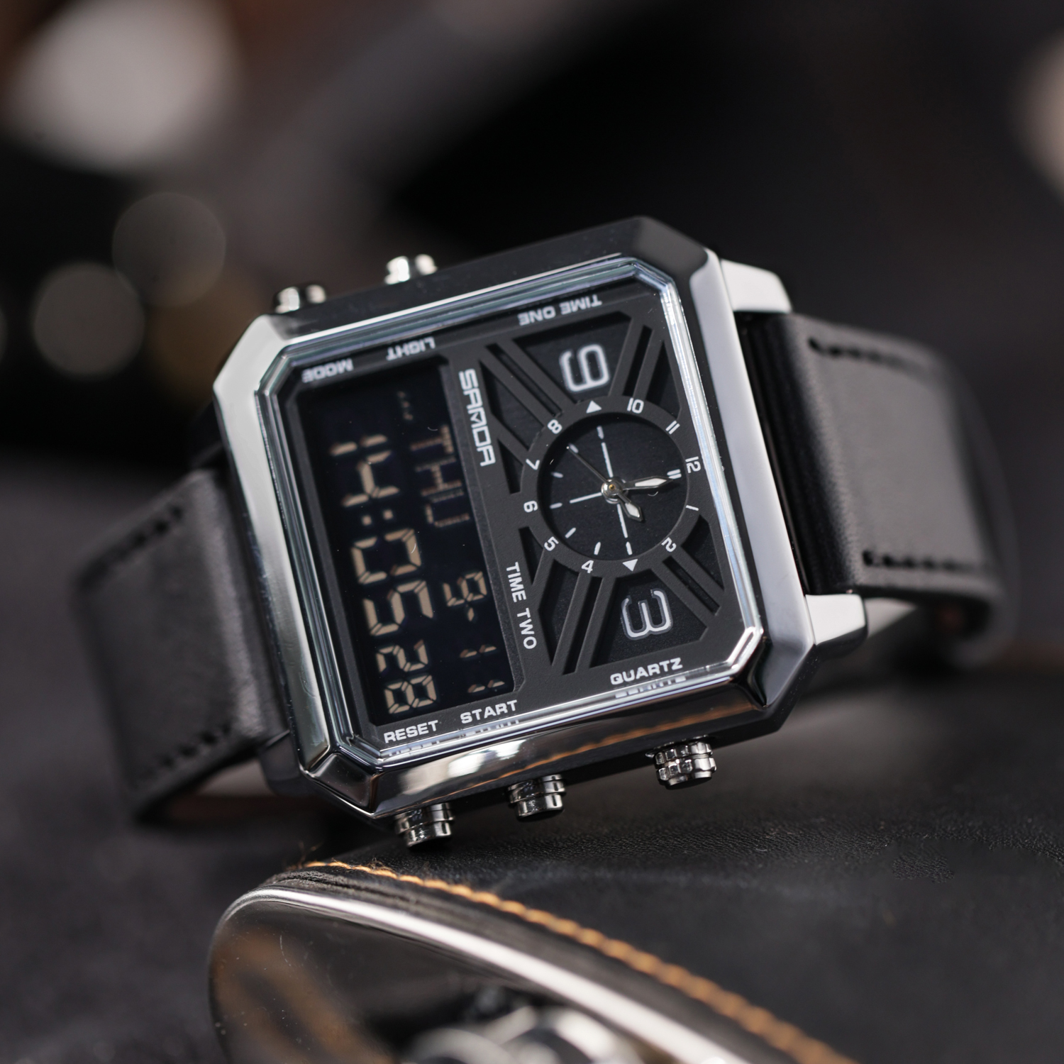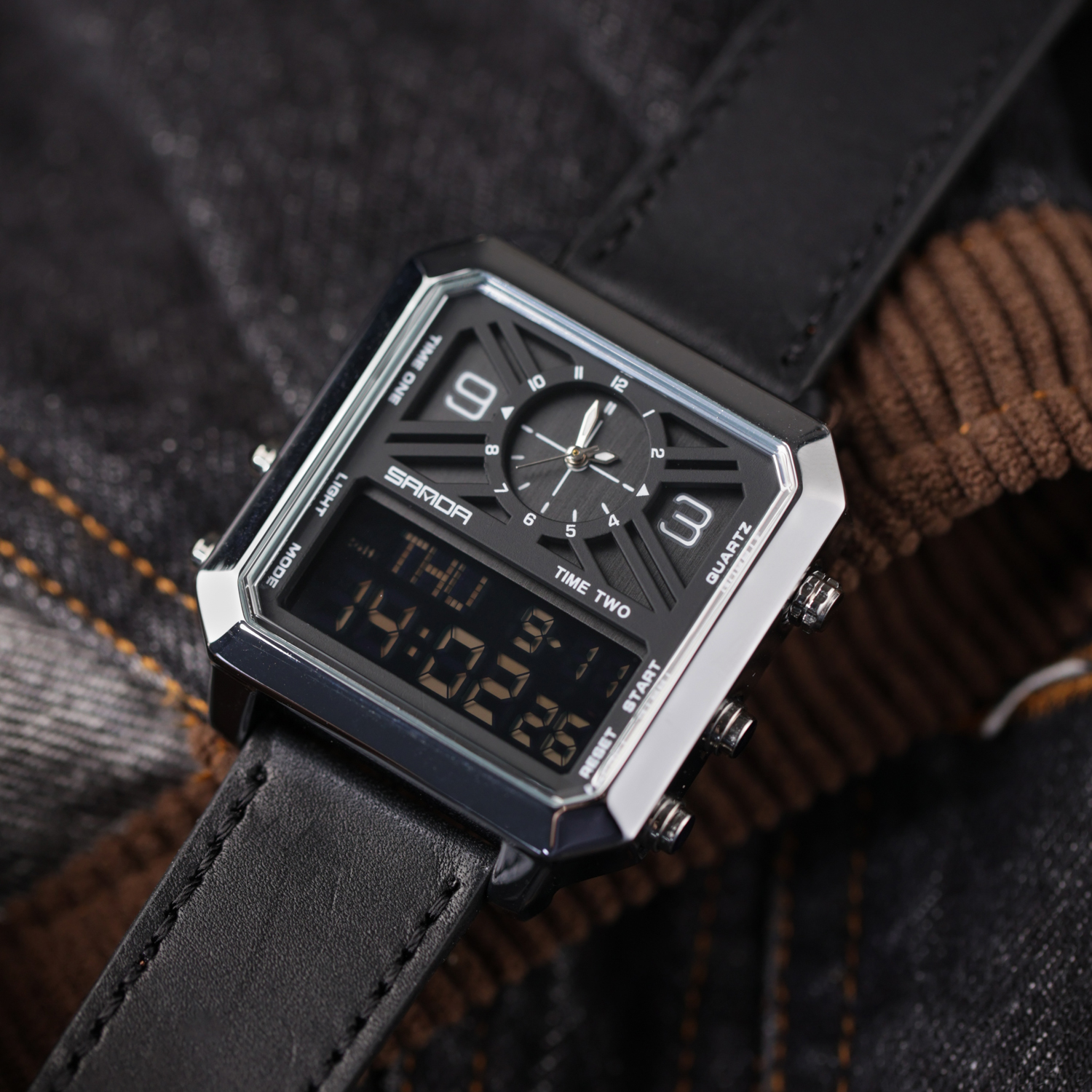 方形多功能手表男品牌正品运动男士双显示初高中男款虫洞概念男表