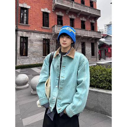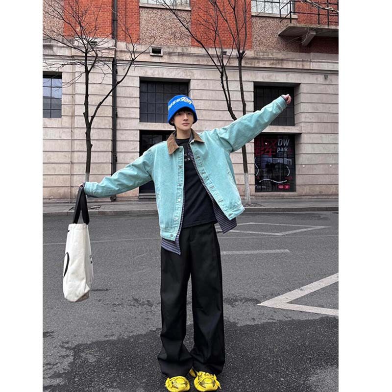 纯棉水洗帆布底特律夹克男生秋季美式复古cleanfit工装棒球服外套
