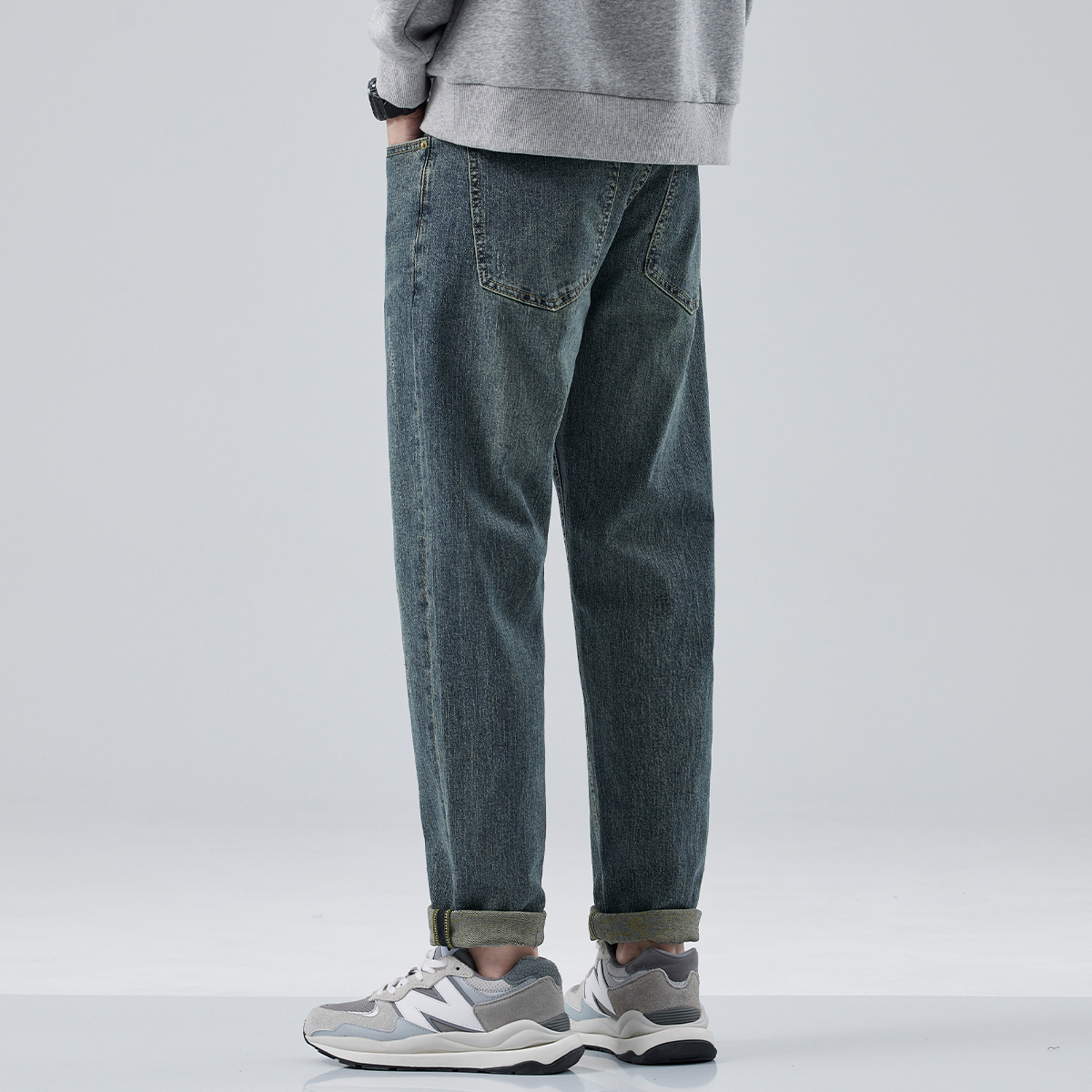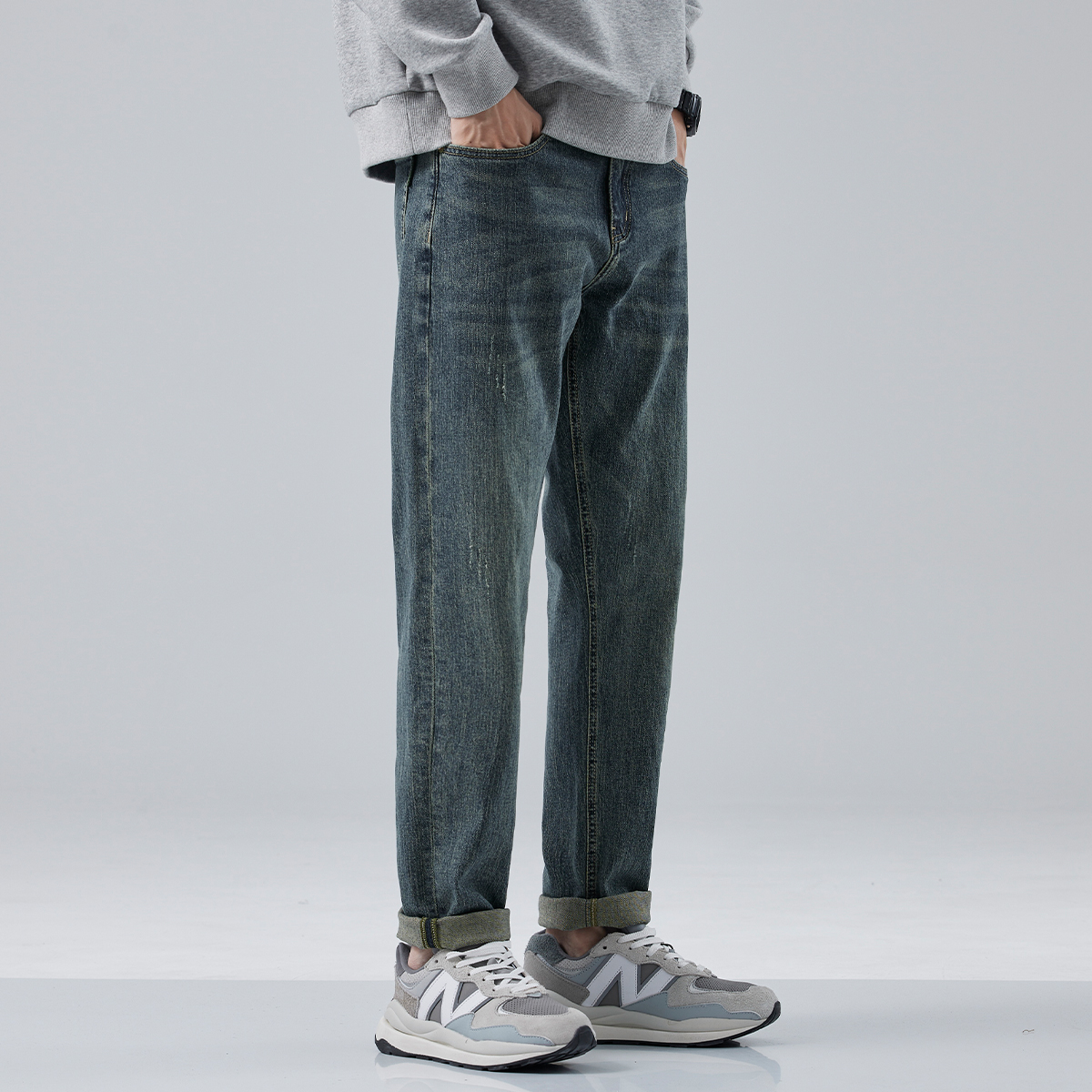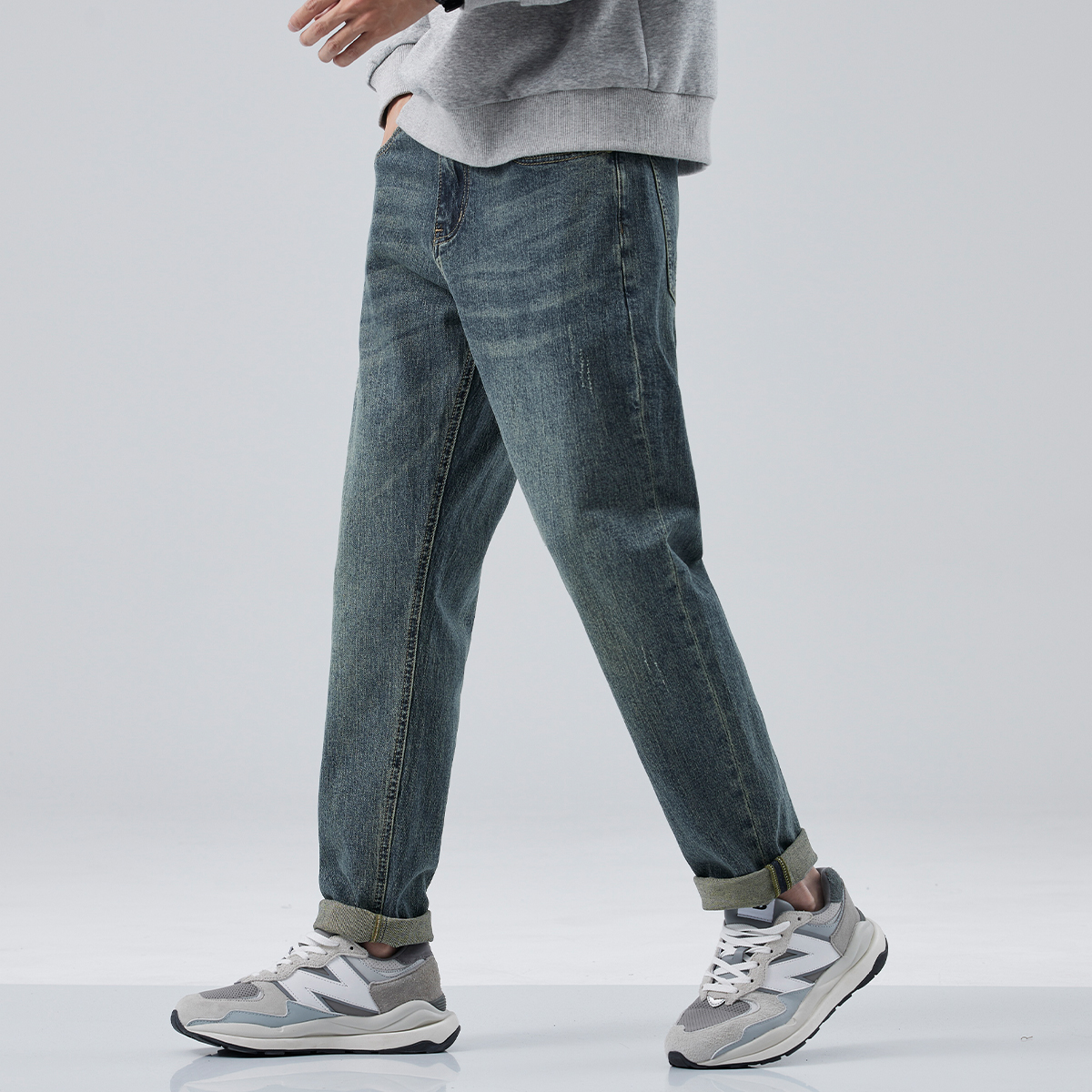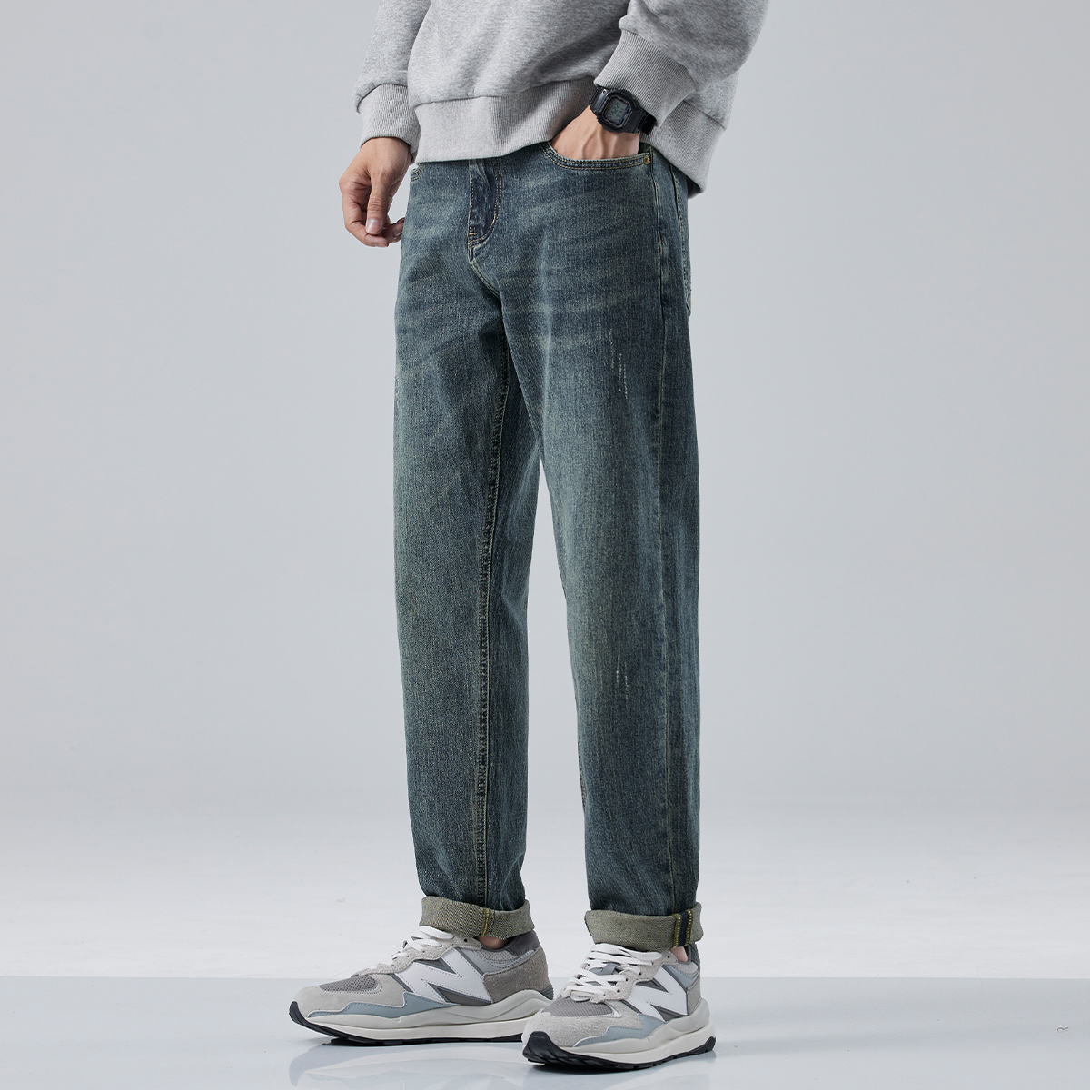 hansca直筒丹宁牛仔裤男2025春秋季新款猫须复古水洗休闲宽松长裤