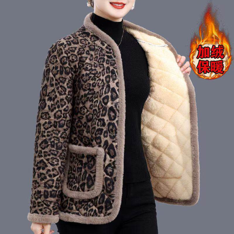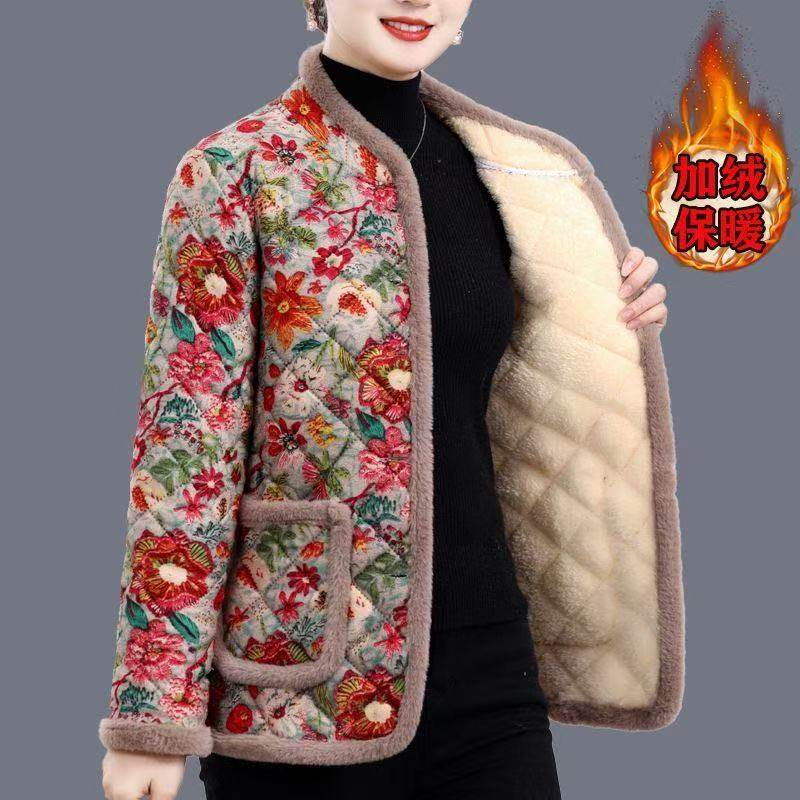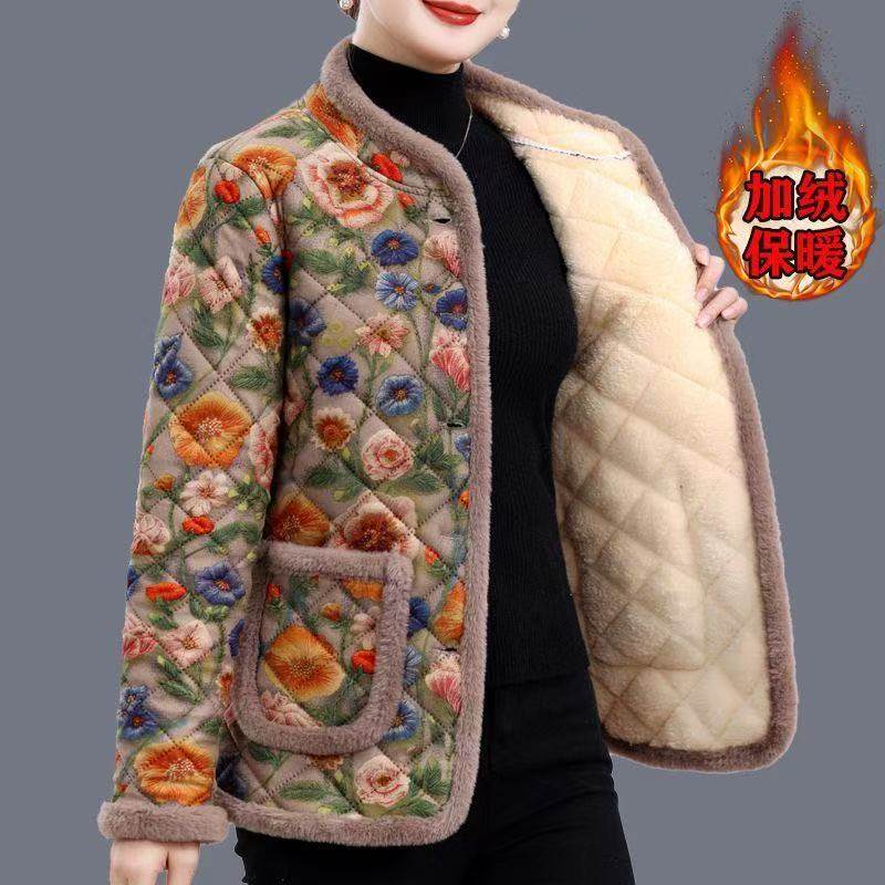 妈妈装冬季洋气七分袖加绒棉衣保暖外套中老年女加厚半截袖小棉袄