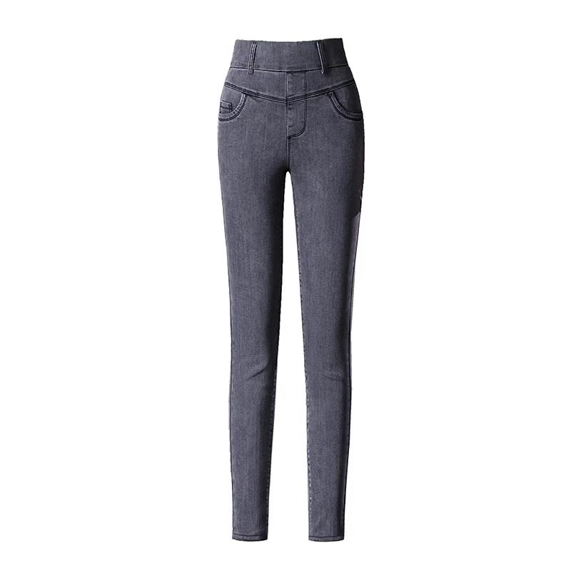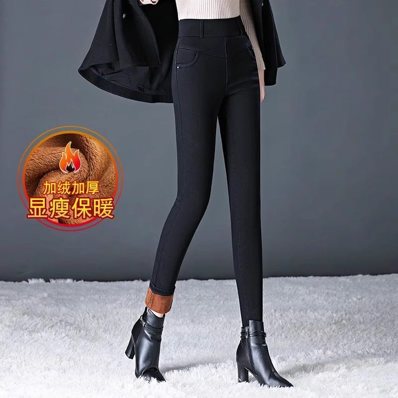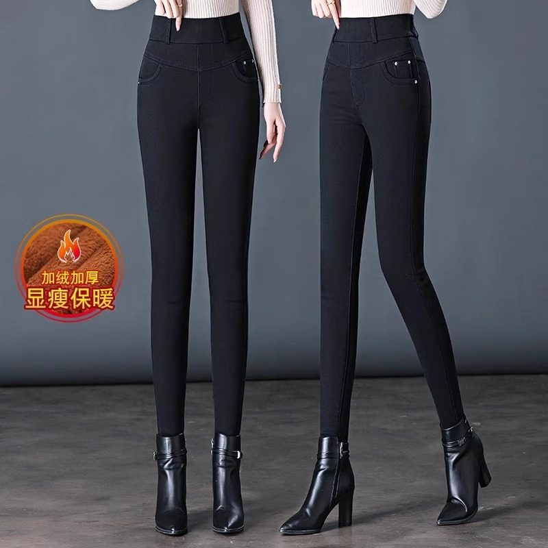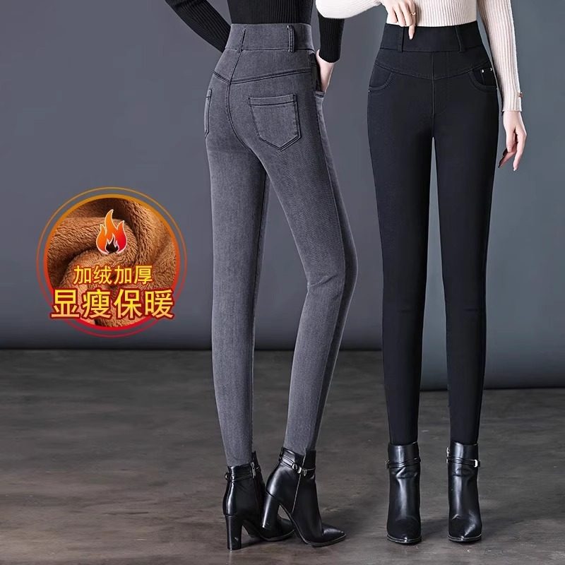 加绒牛仔裤女高腰春秋季外穿加厚2025新款小脚紧身烟灰色保暖棉裤