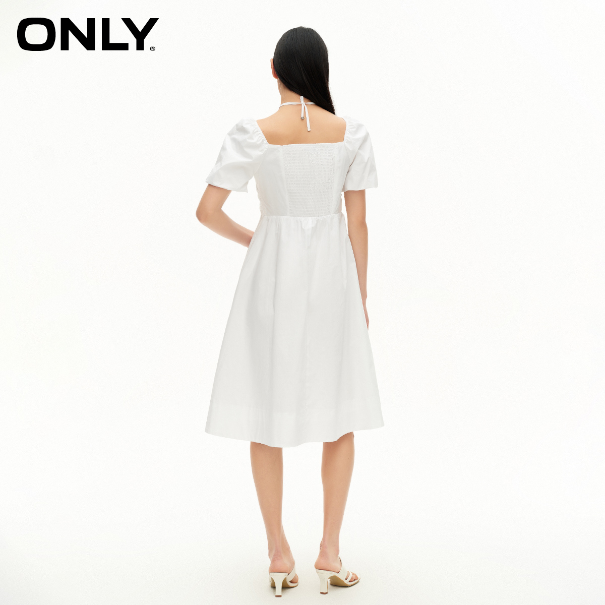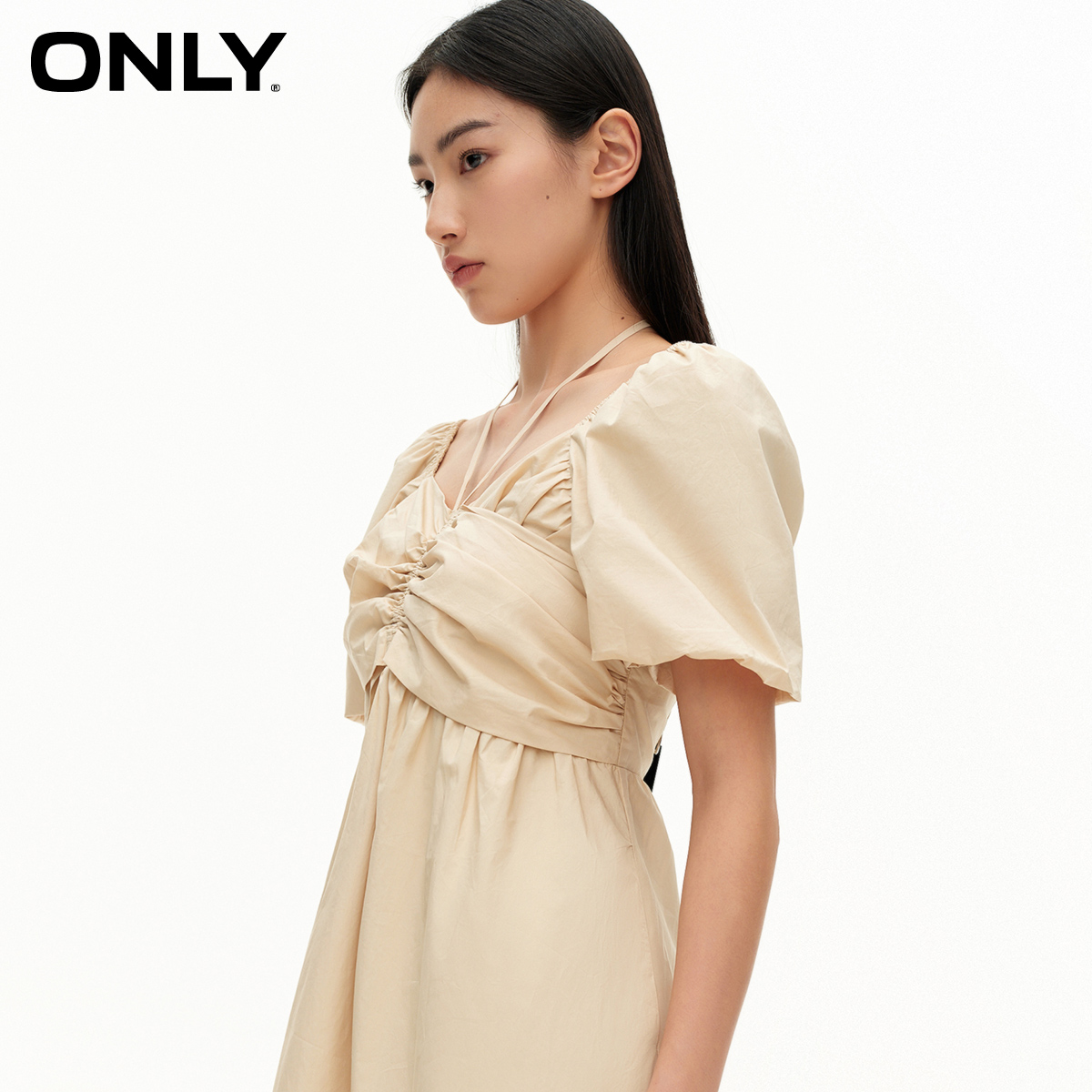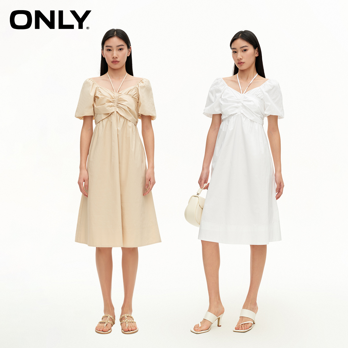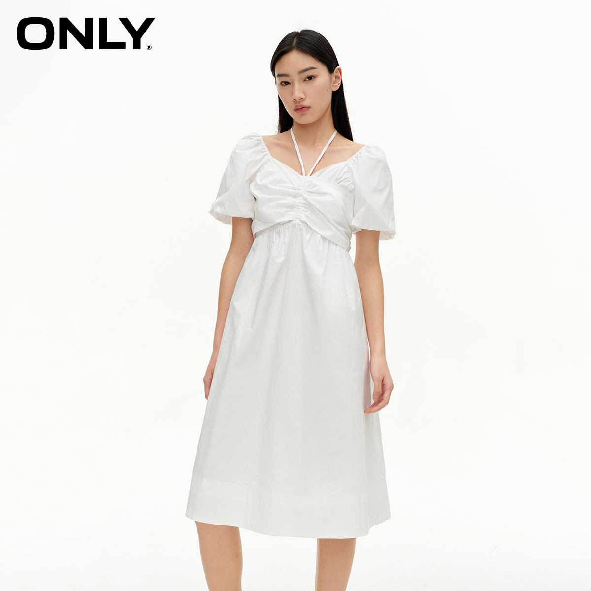 【ONLY奥莱】夏季时尚简约泡泡袖收腰中长款连衣裙女