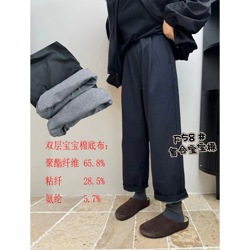 桐桐佳~冬季双层宝宝棉九分直筒裤女宽松哈伦裤隐藏腰头休闲裤F58