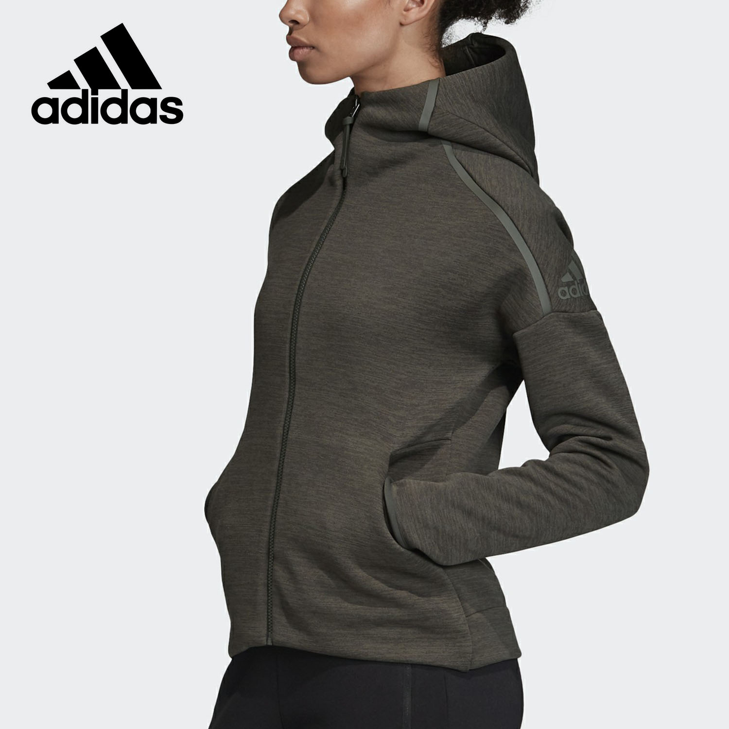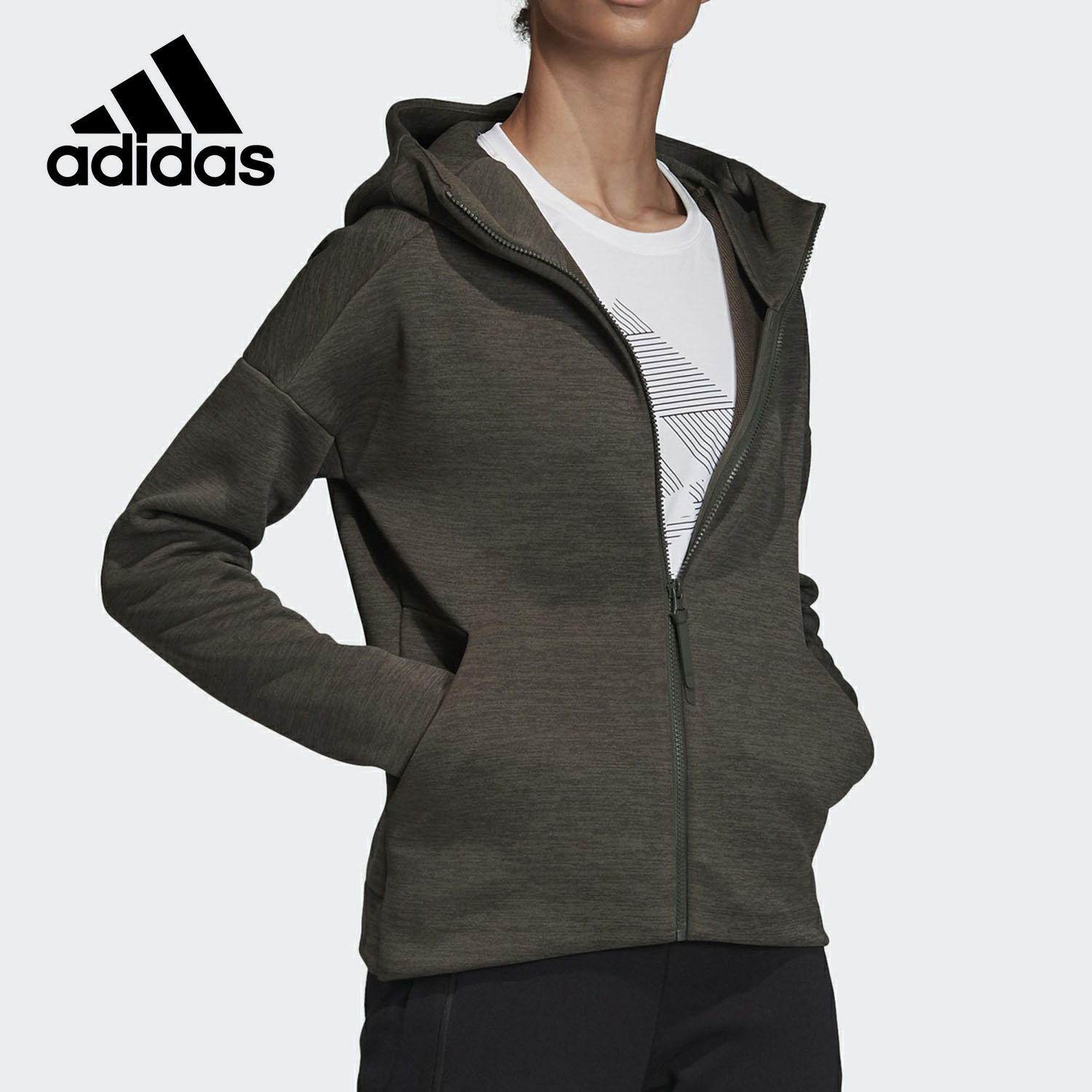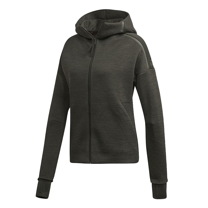 Adidas/阿迪达斯正品 女子运动休闲拇指洞连帽针织夹克外套EA0342