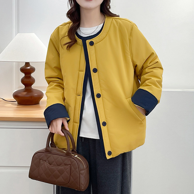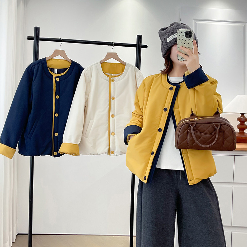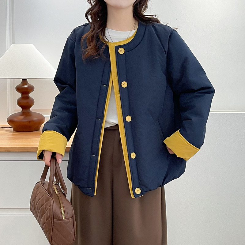 大码女装撞色小棉衣外套2025年冬季新款显瘦百搭棉服胖mm休闲棉袄