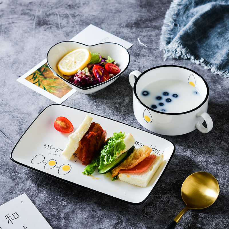 创意个性餐具套装陶瓷一人食网红早餐碗日式月子家用儿童碗碟单人