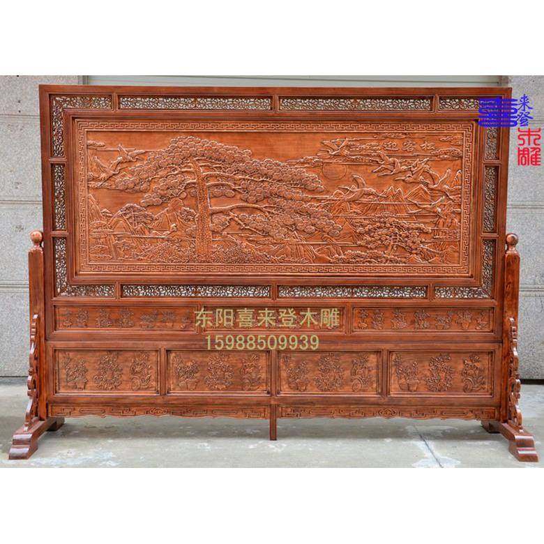 cs东阳木雕落地屏实木迎客松中式实木双面雕刻屏风客厅办公室隔