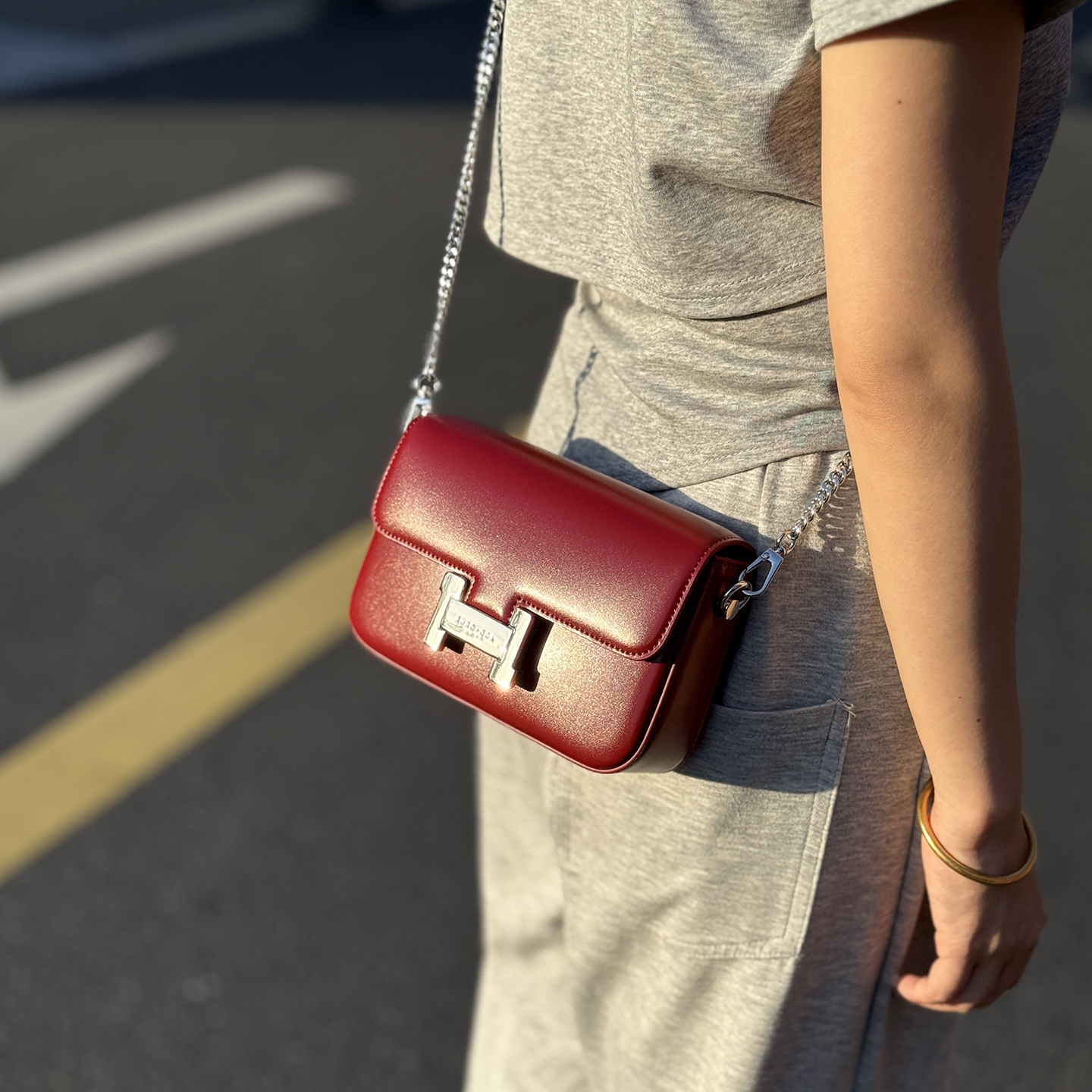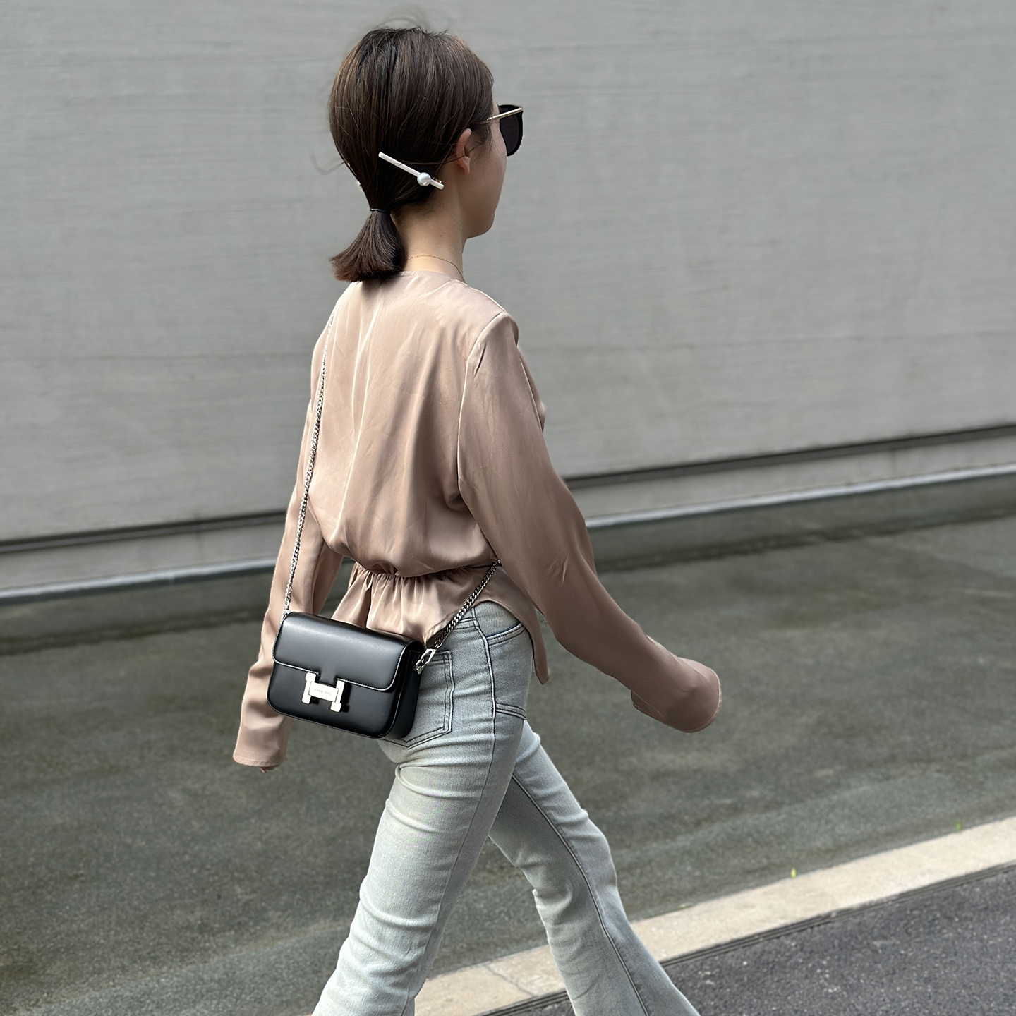 菲小姐订制高级感时尚小众真皮链条小方包轻奢牛皮单肩斜挎手机包