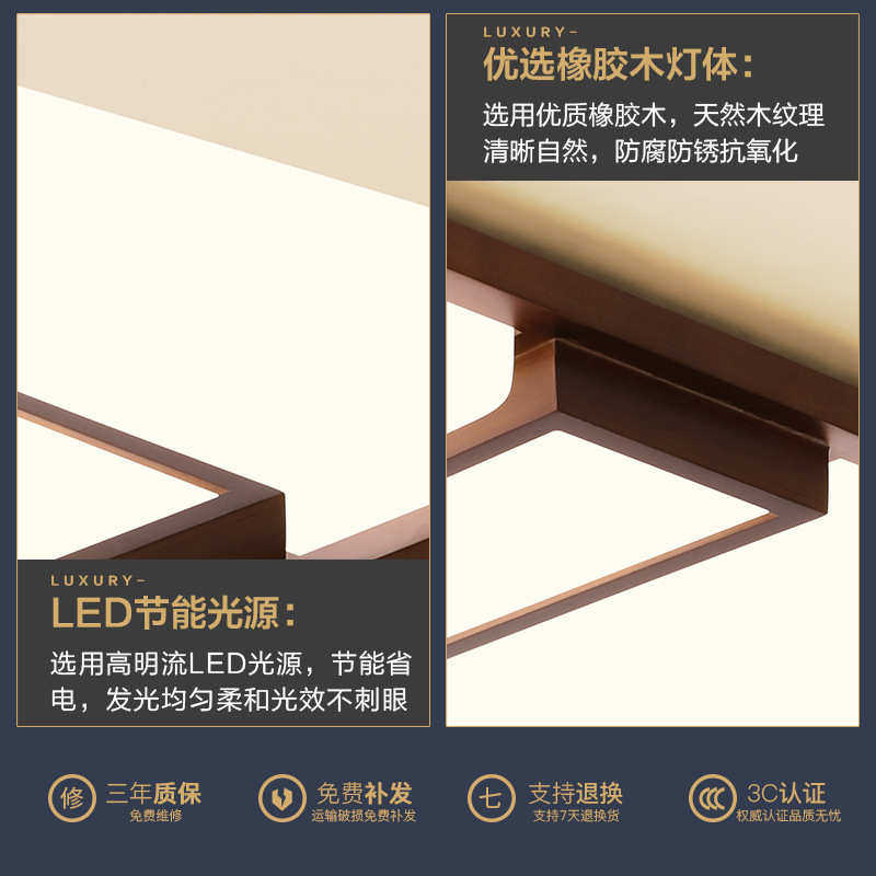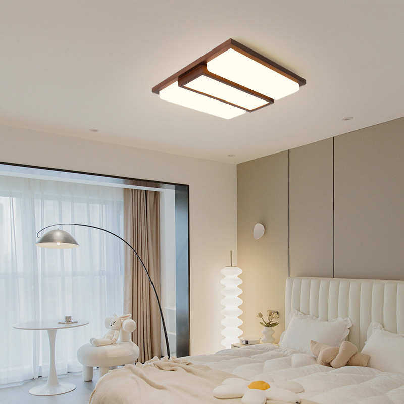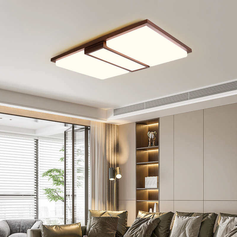 客厅灯吸顶灯新款现代简约胡桃木艺实木风格创意北欧长方形卧室灯