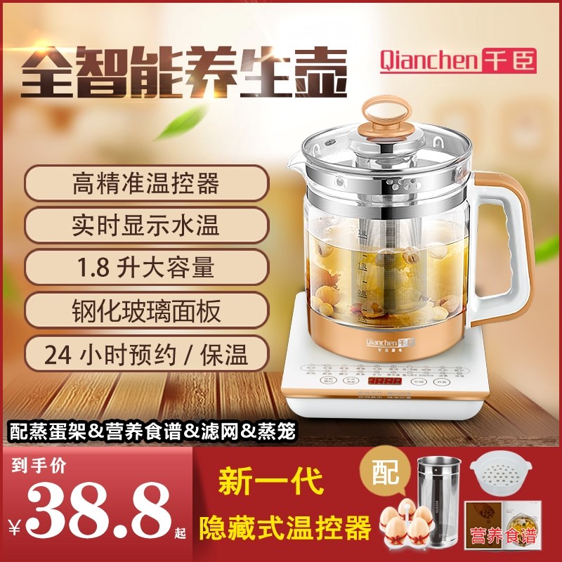 千臣养生壶全自动多功能加厚玻璃花茶壶黑茶壶电热烧水壶煮茶器煲