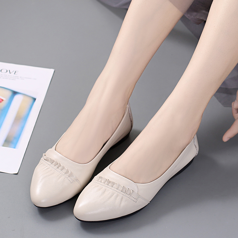2025新款豆豆鞋女春季夏季牛皮鞋子平跟平底单鞋软底软面舒适女鞋