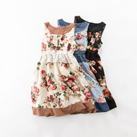 2121春 花样演绎好气质 蕾丝腰 玫瑰花柄背心连衣裙