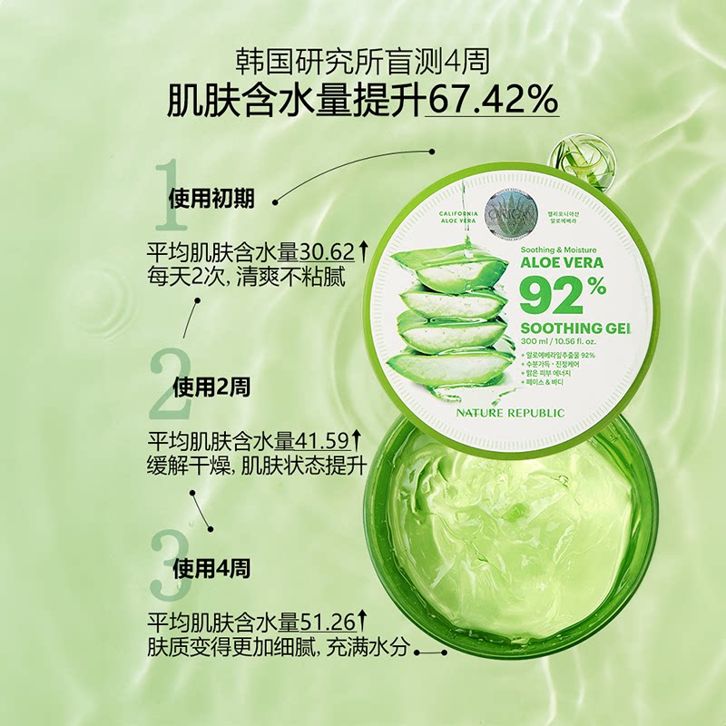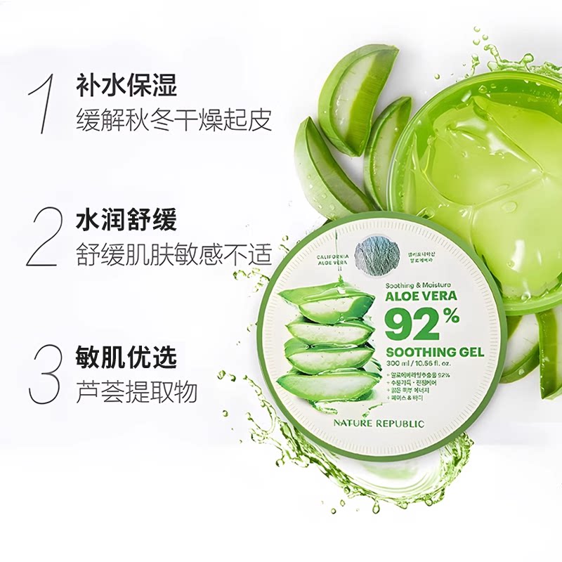 自然乐园芦荟胶补水保湿舒缓自然面霜男女专用共和国面膜凝胶官方