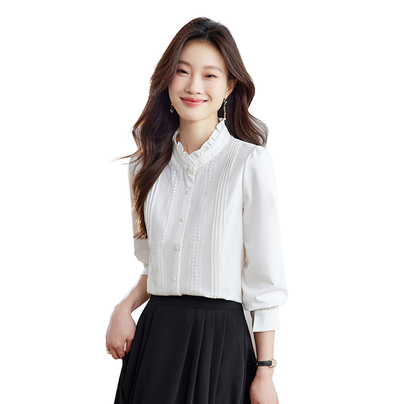 白色衬衫女2025秋季新款法式刺绣木耳边立领雪纺衬衣长袖内搭上衣