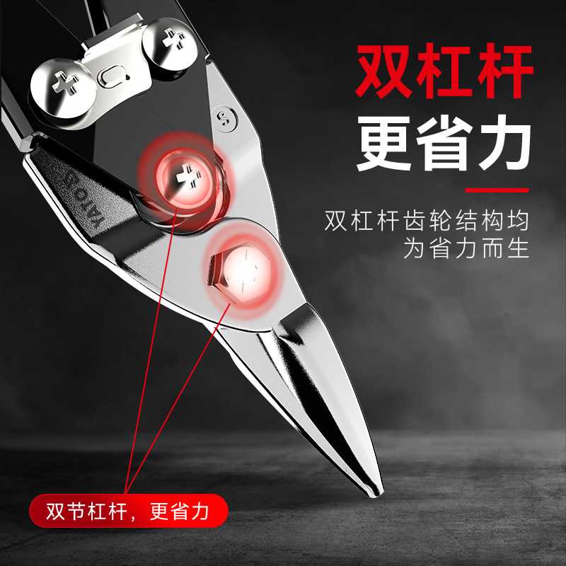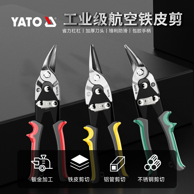 YATO剪铁皮的专用剪刀龙骨航空剪铝扣板弯嘴不锈钢轻钢工业大剪子