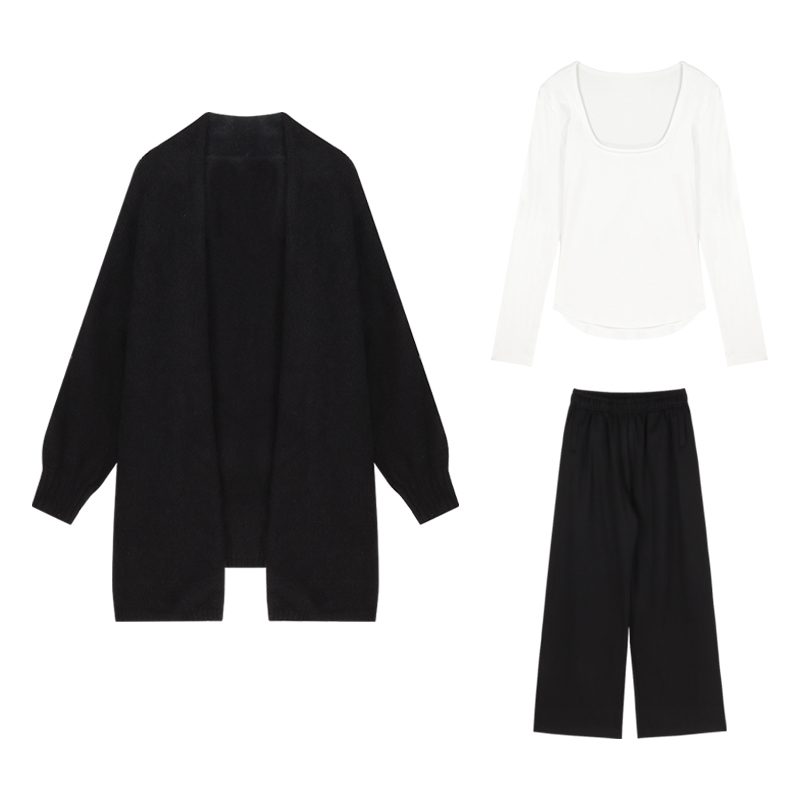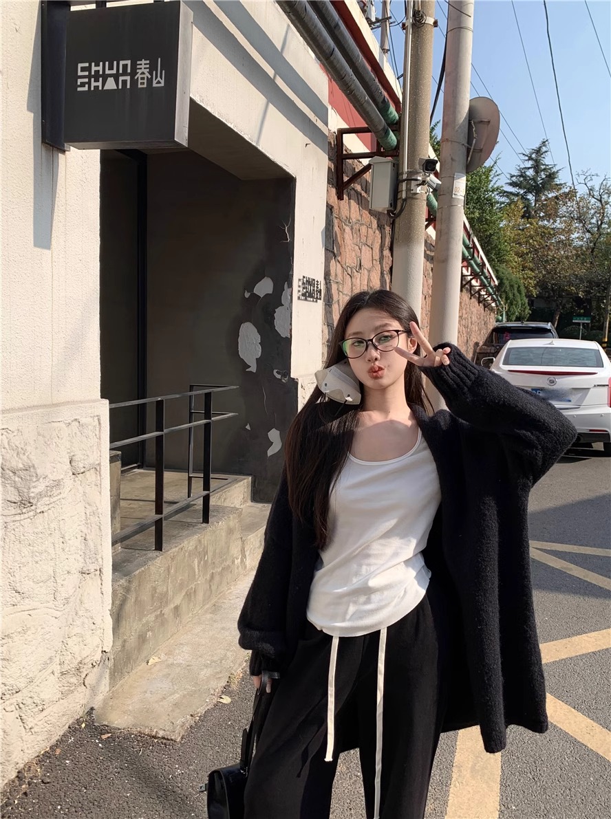 黑色毛衣外套女秋冬季慵懒风休闲针织开衫宽松显瘦中长款上衣外穿