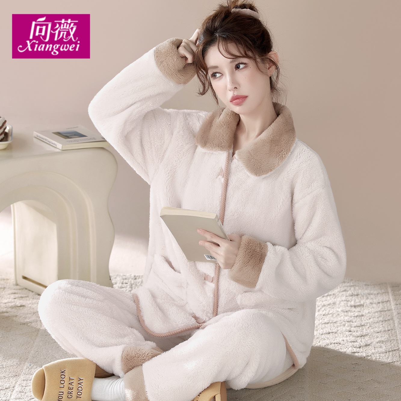 柔软舒适秋冬新款雪花绒家居服可外穿女士暖绒保暖法兰绒家居服