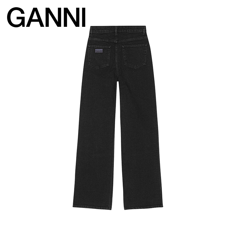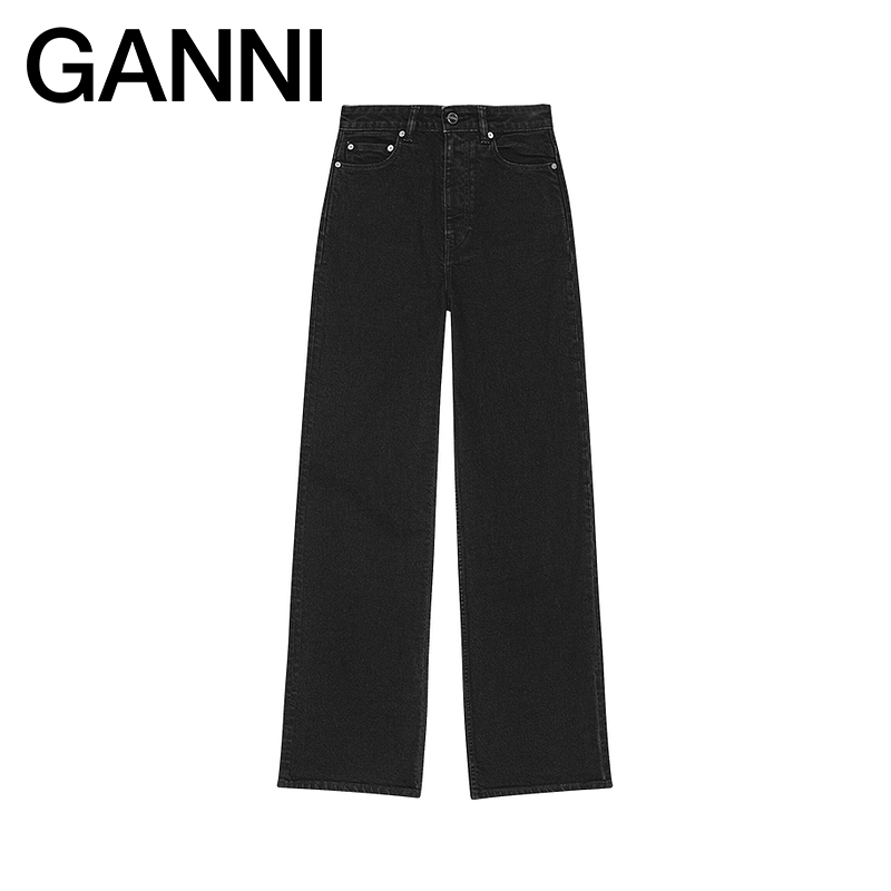 【甄选折扣】GANNI女装 水洗黑色阔腿裤直筒裤牛仔裤 J1367006