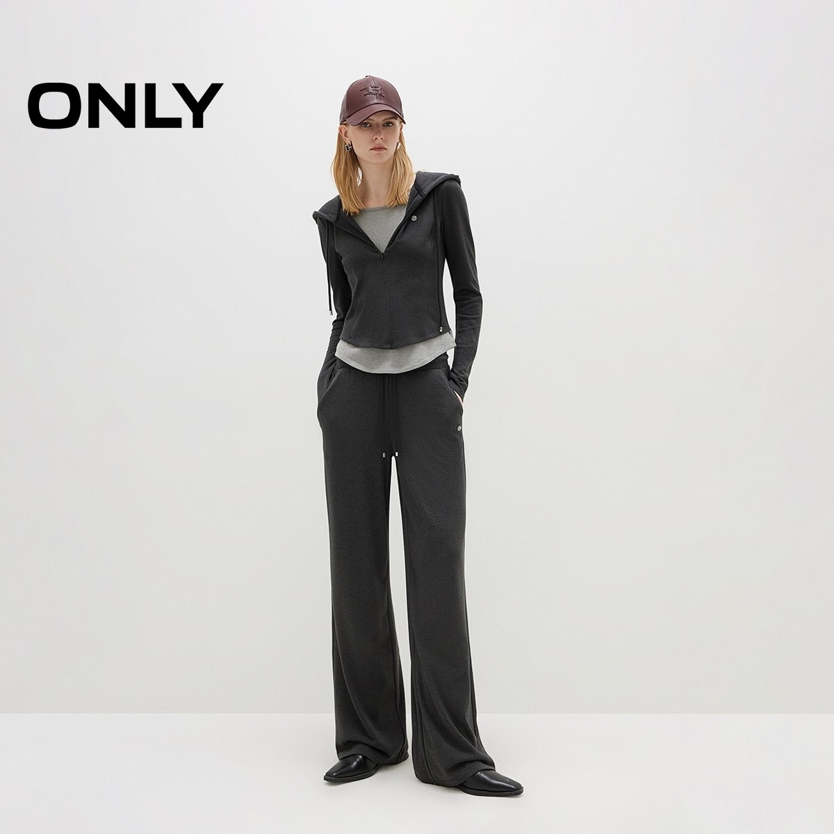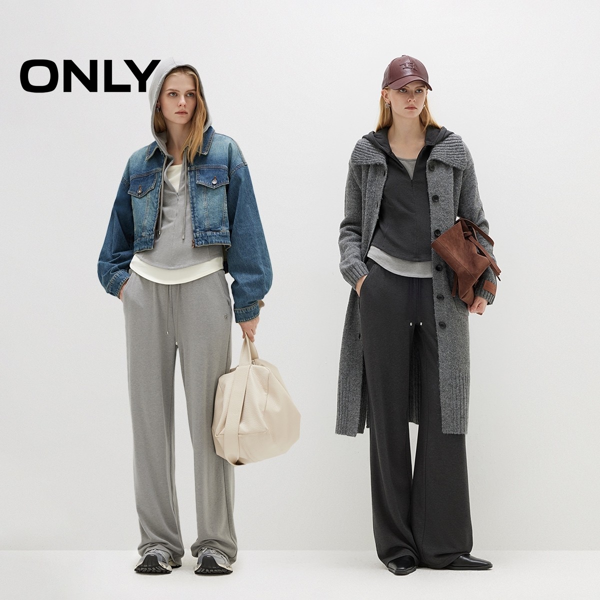 绫致ONLY2025秋冬新款弹力抽绳宽松加绒长裤直筒裤休闲裤女