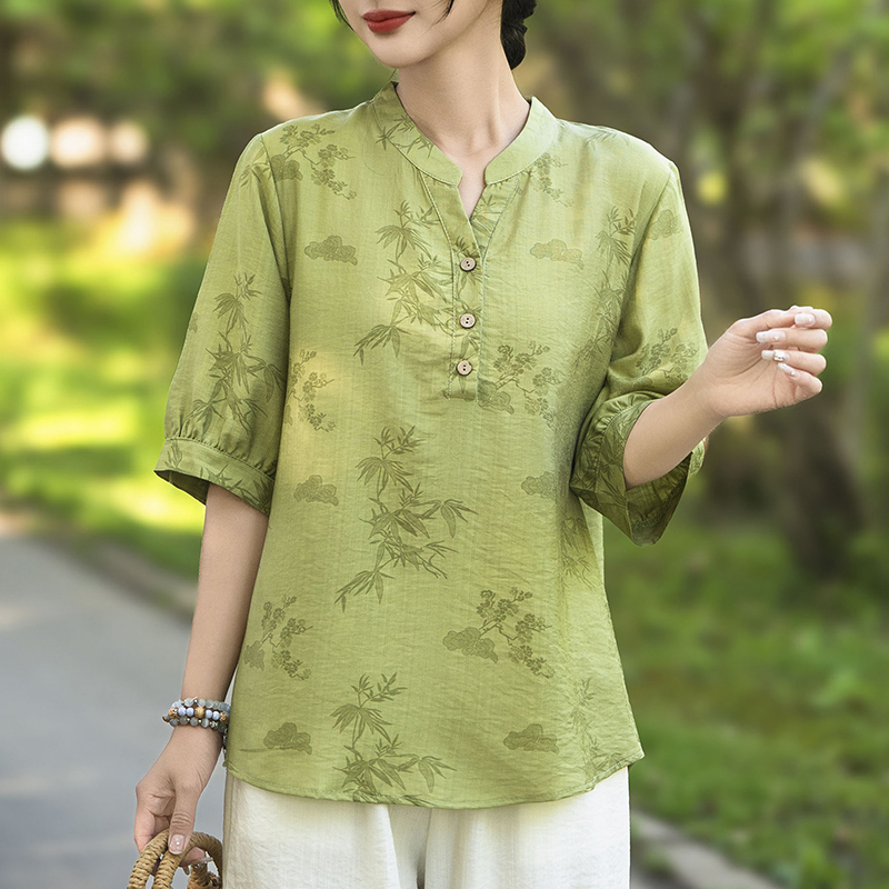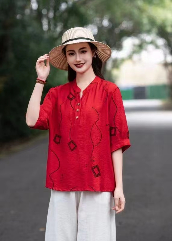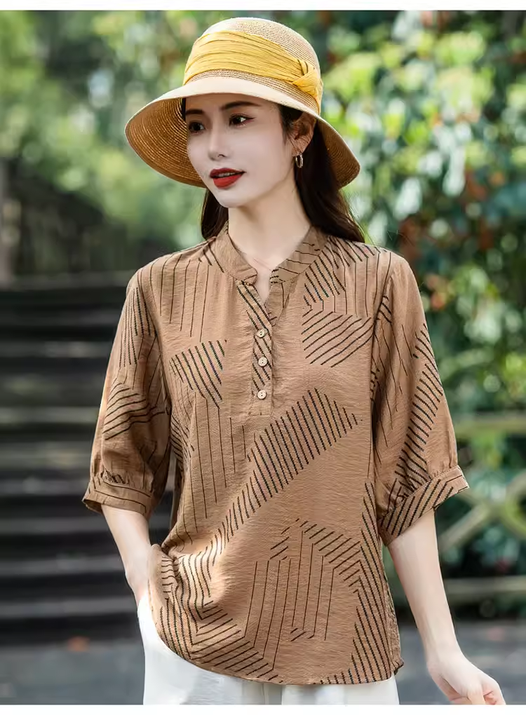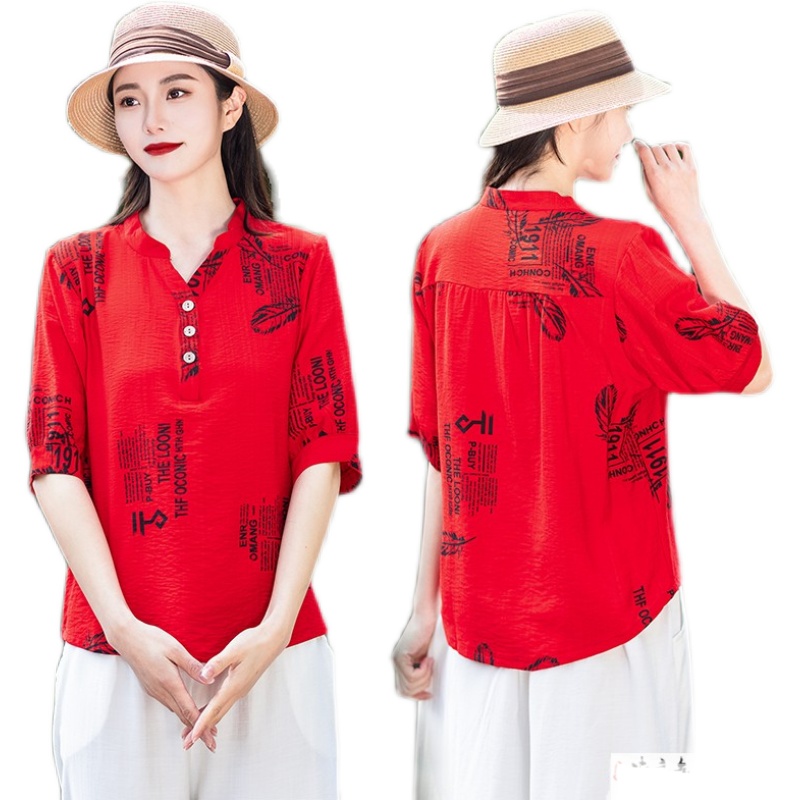 短袖T恤棉麻上衣夏装妈妈装小衫