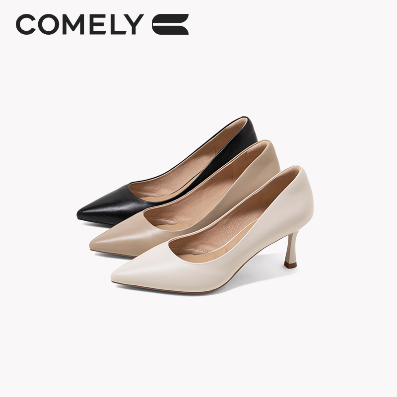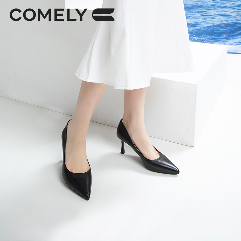 康莉单鞋女真皮2023年春季新款细跟尖头高跟羊皮简约职业工作鞋