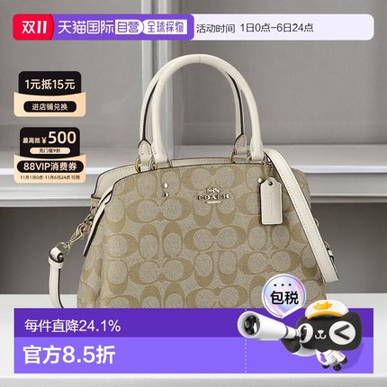 日本直邮 COACH蔻驰女士皮革米白色老花手提日常贝壳包女包91494
