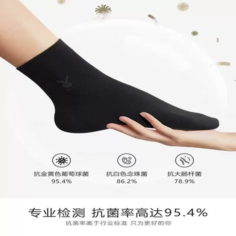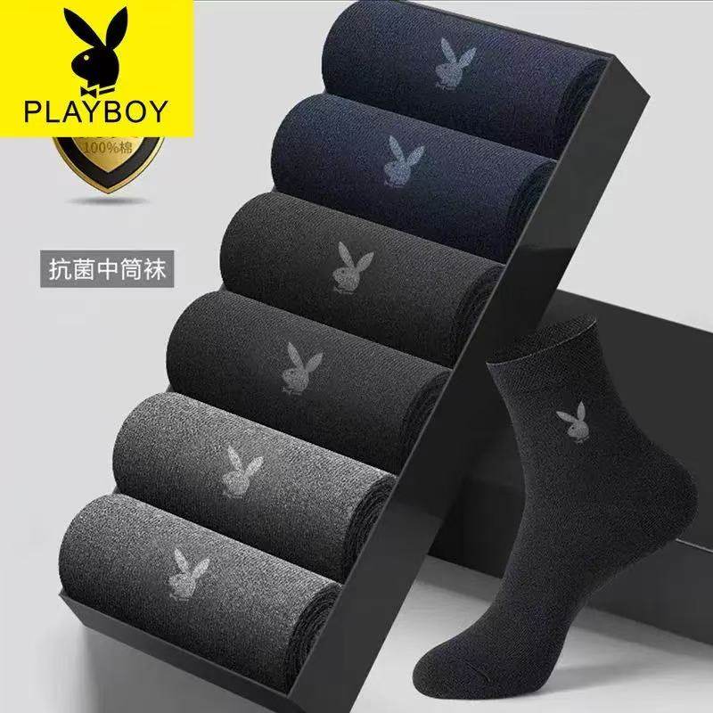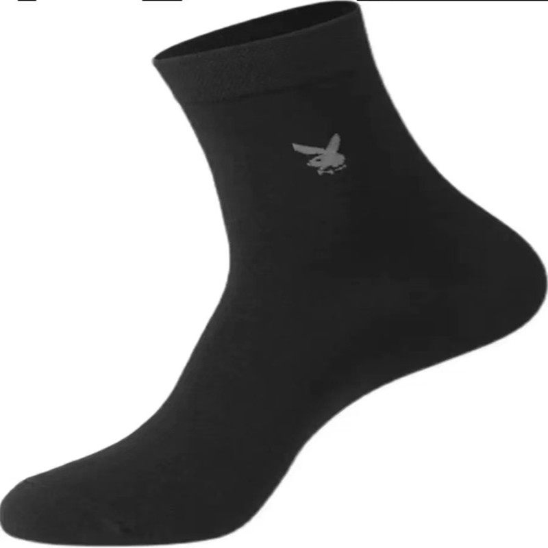 花花公子男士袜子纯棉春秋短袜抗菌防臭全棉中筒男袜秋冬黑色长袜