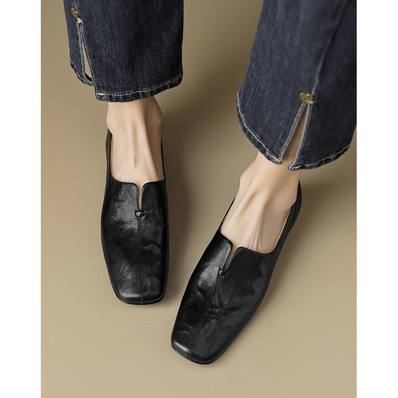 Kmeizu显脚小~2cm平底羊皮乐福鞋女春方头小皮鞋软底法式简约单鞋