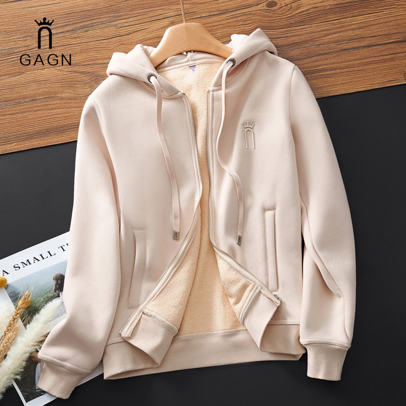 2025冬季拉链加厚正肩外套加绒保暖摇粒绒开衫宽松大码卫衣连帽女
