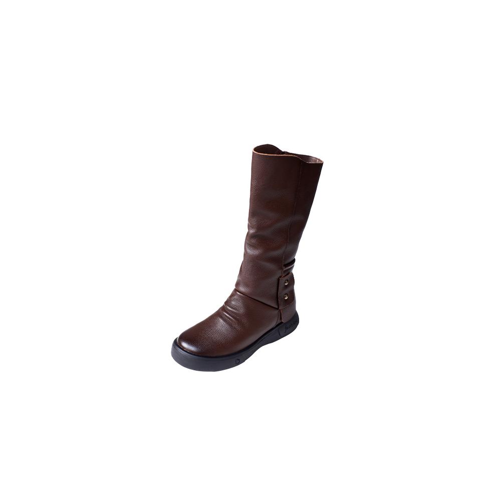 2025秋冬新款英伦风真皮圆头靴子马丁靴中筒靴女加绒保暖骑士靴