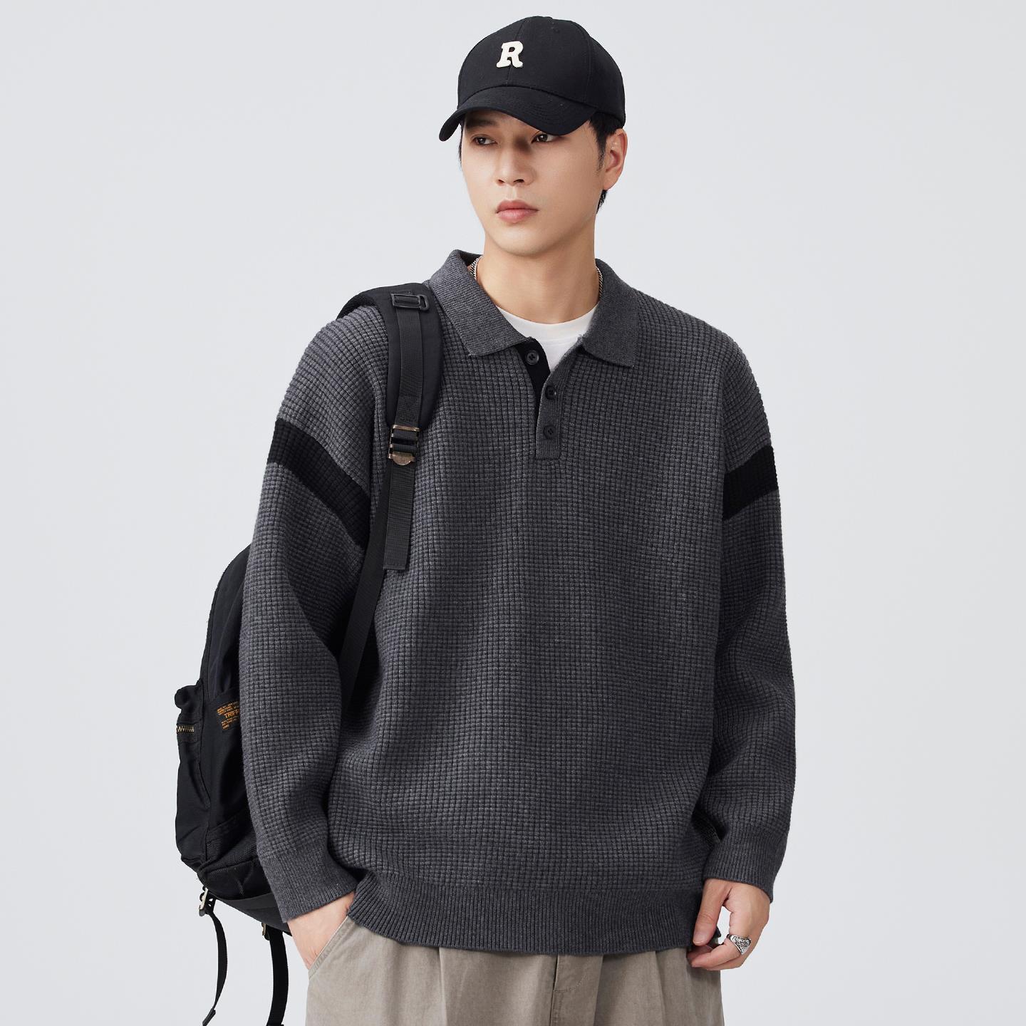 以纯秋冬季翻领毛衣男士日系宽松潮流针织衫百搭休闲外套