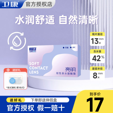 卫康隐形眼镜近视亮明月抛2片高度数轻薄透明近视镜片旗舰店正品