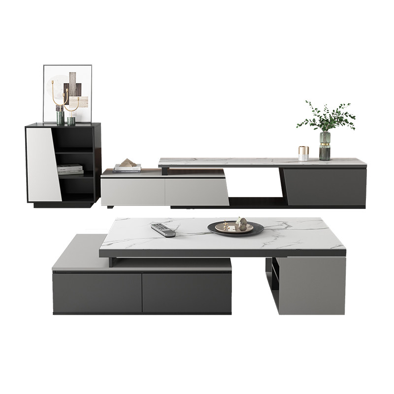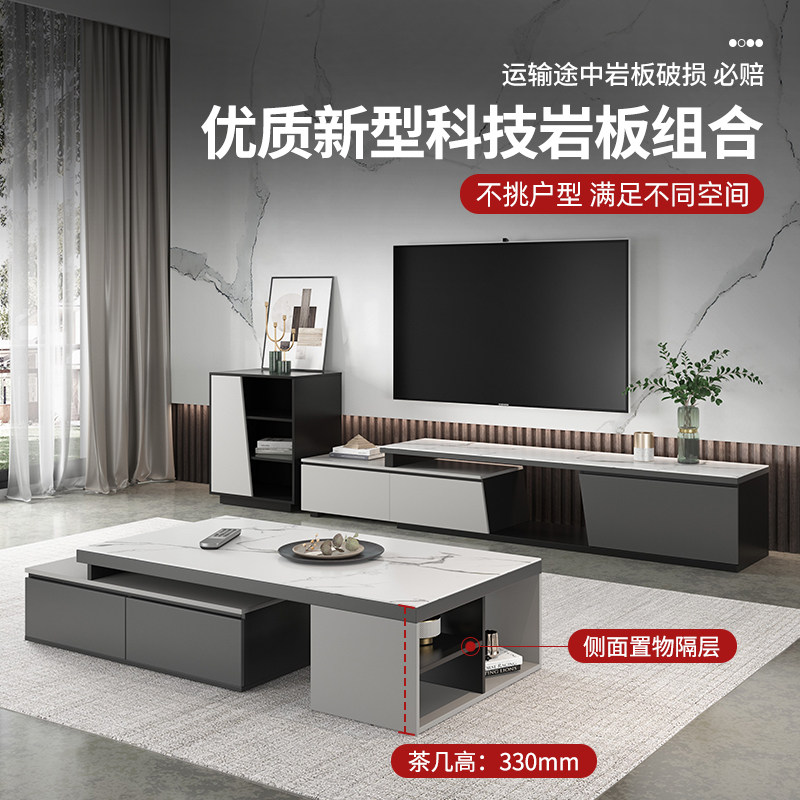 极简岩板电视柜茶几组合套装客厅家用小户型可伸缩电视柜成套家具