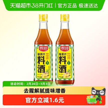 厨邦调料汁葱姜汁料酒500ml*2厨房烹饪调料清蒸红烧家用去腥调料