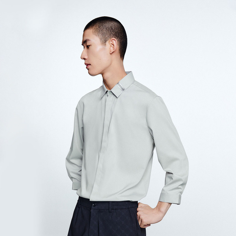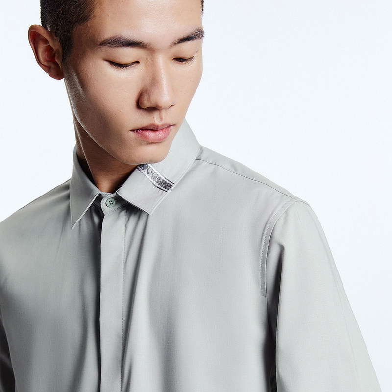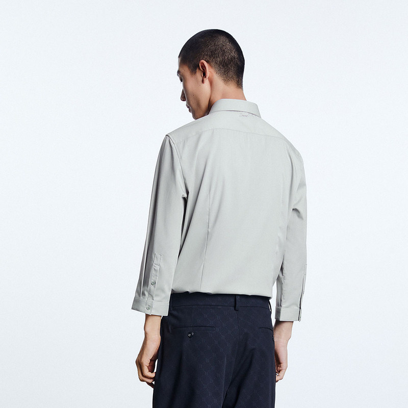 太平鸟男装 新款七分袖衬衫男休闲短袖衬衫