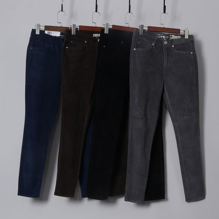 细条绒灯芯绒小脚裤高腰大码
