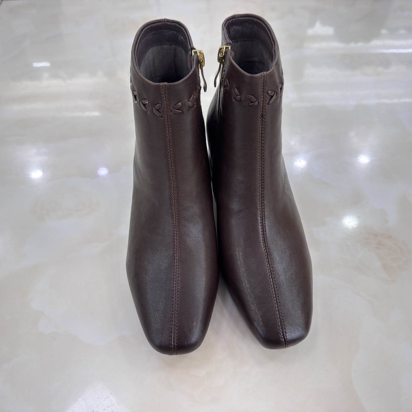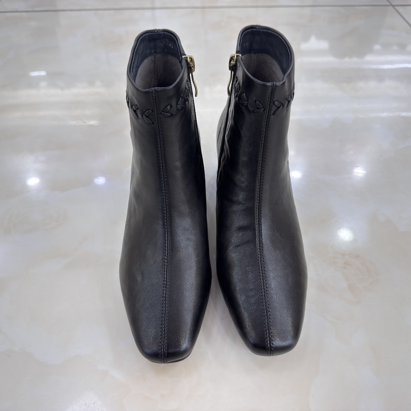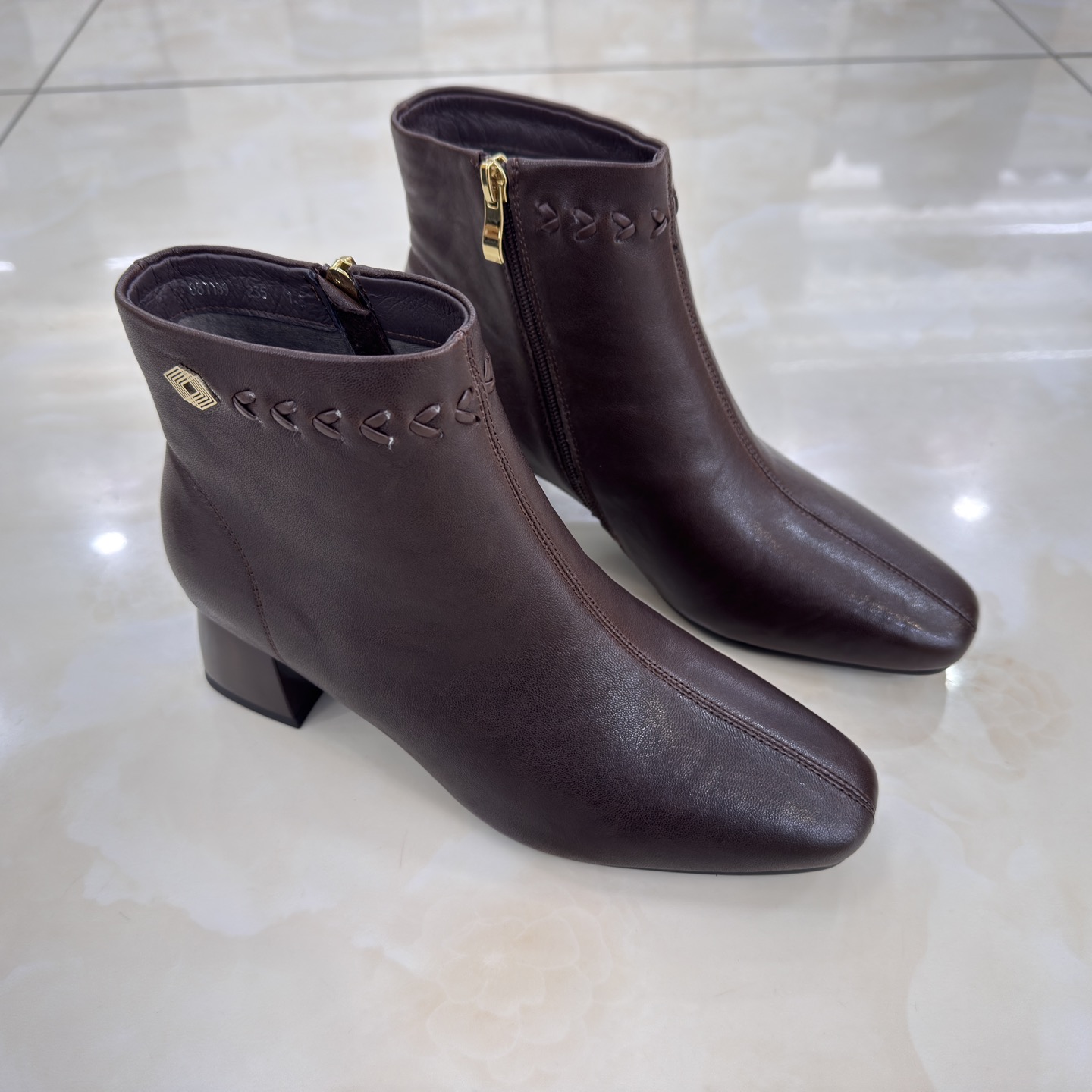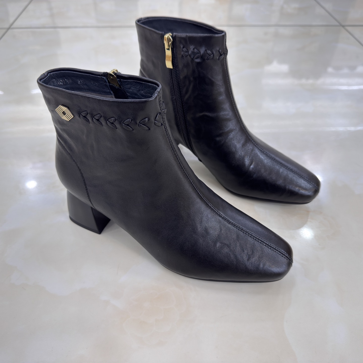 卡莱特斯2025秋冬新款粗高跟羊皮方头时尚女短靴单靴子正品081189