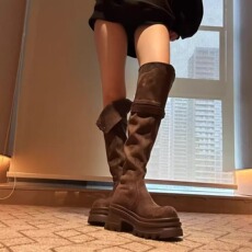 大东黑色长筒靴女2025新款过膝长靴厚底靴子女款秋冬瘦瘦靴高筒靴