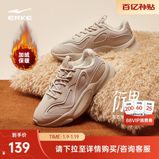 鸿星尔克衍界加绒加厚运动鞋女鞋棉鞋秋冬新款皮面厚底休闲老爹鞋