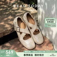 Kmeizu巨软~马毛拼色玛丽珍鞋女春方头一字扣带低跟平底赫本单鞋