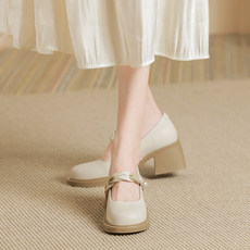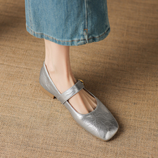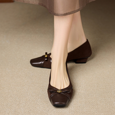 欧洲站欧货真皮女鞋2026春新款方头粗跟小皮鞋低跟浅口手抓皮单鞋