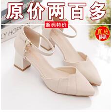 品牌真皮包头粗跟凉鞋女尖头2026春夏新款中空高跟韩版一字扣单鞋