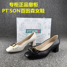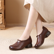 正品撤柜品牌时尚百搭真皮女鞋羊皮秋季款圆头浅口中跟套脚单鞋女