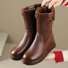 短靴女低跟软底妈妈棉鞋大码真皮春秋单靴冬季加绒女靴马丁靴中靴