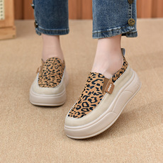 坡跟单鞋女2026春秋新款真皮一脚蹬软底软皮休闲舒适内增高豆豆鞋