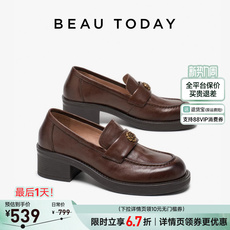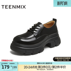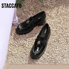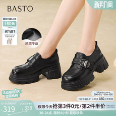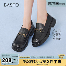 百思图2026春季商场新款牛皮厚底粗跟乐福鞋小皮鞋女单鞋CS583AM6