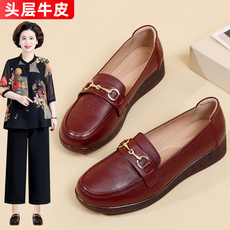 牛筋软底妈妈鞋春秋驾车皮鞋一脚蹬平底鞋子女士四季单鞋乐福鞋女
