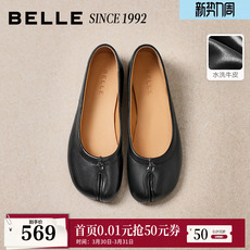 【92系列】百丽复古分趾平底单鞋女26新款芭蕾真皮鞋子H8034AQ6预